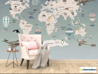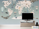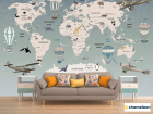 Фотообои Детская карта на украинском с воздушными шарами и самолетами