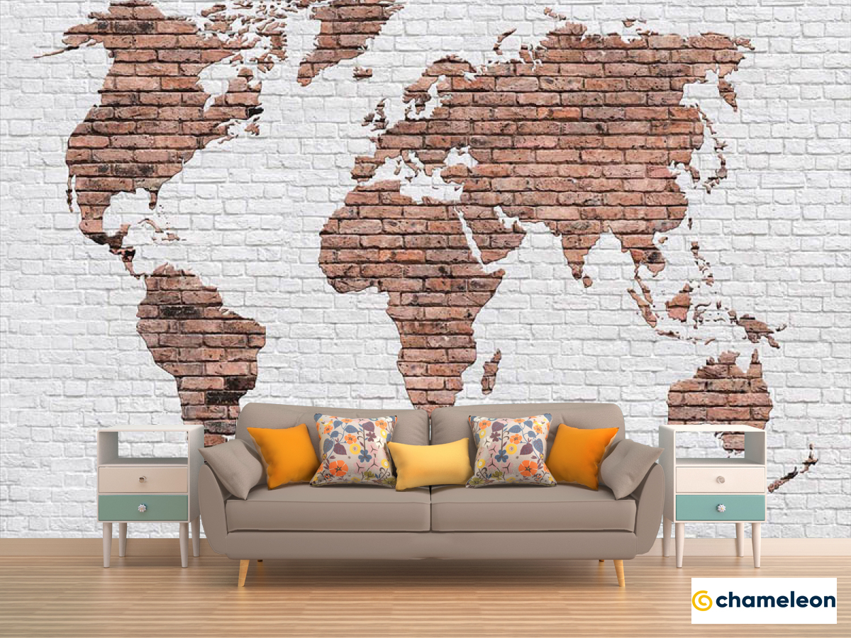 Фотообои «Фотообои Карта мира на кирпичной кладке», (арт. 32503) - купить в интернет-магазине Хамелеон