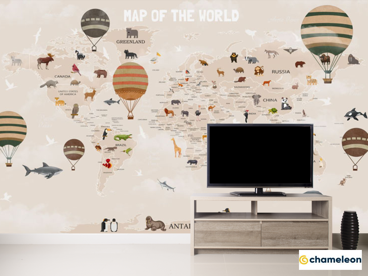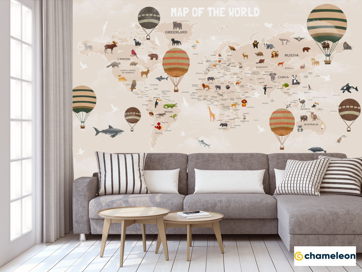 Фотообои «Фотообои Карта мира детская в бежевом цвете на английском», (арт. 33065) - купить в интернет-магазине Хамелеон
