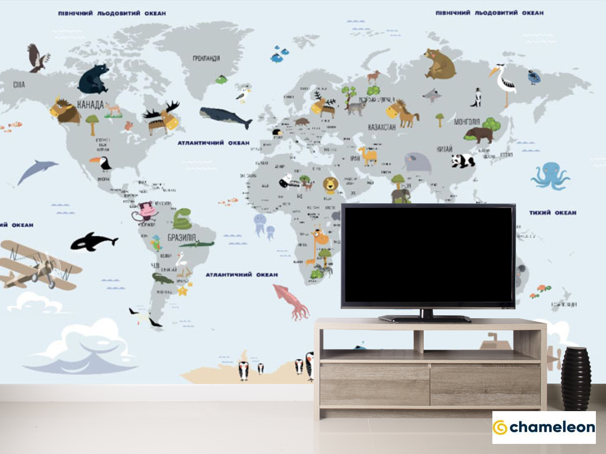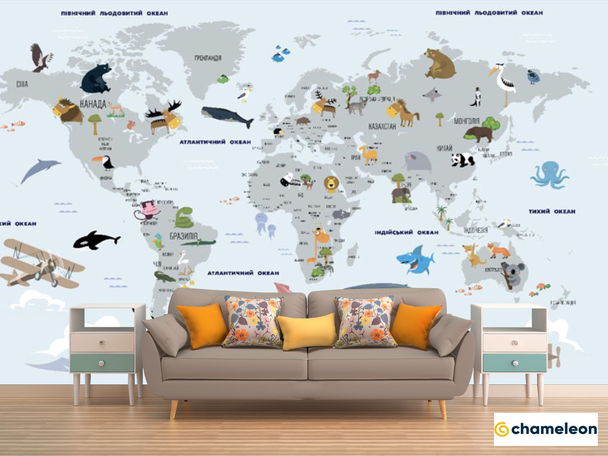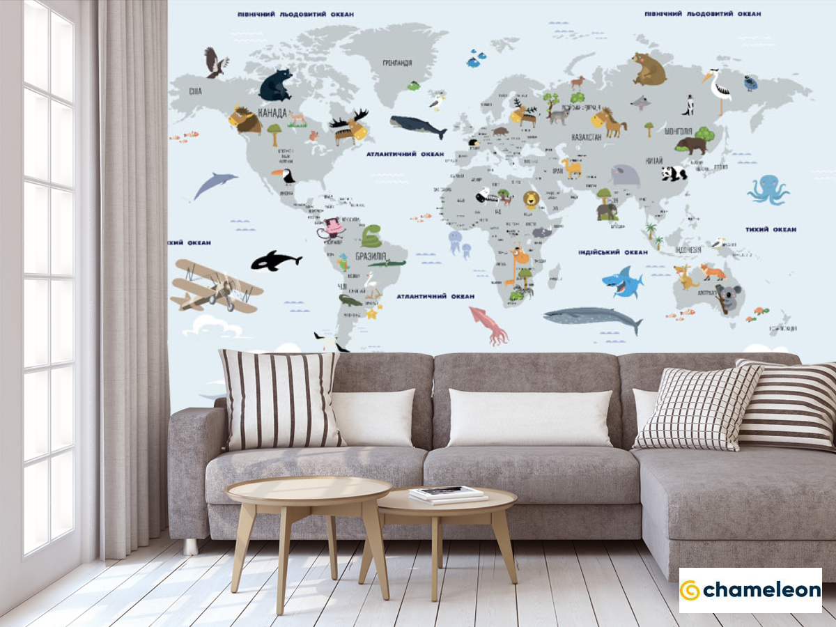 Фотообои «Фотообои Карта мира голубя с китами на украинском», (арт. 33279) - купить в интернет-магазине Хамелеон