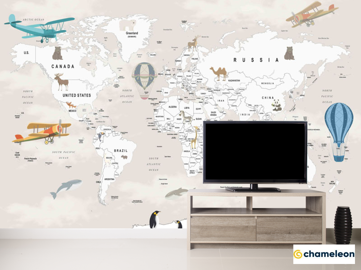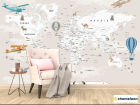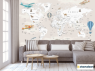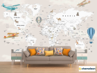 Фотообои «Фотообои Бежевая карта на английском самолеты и шары», (арт. 34398) - купить в интернет-магазине Хамелеон