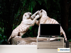 Фотообои Драка белых тигров