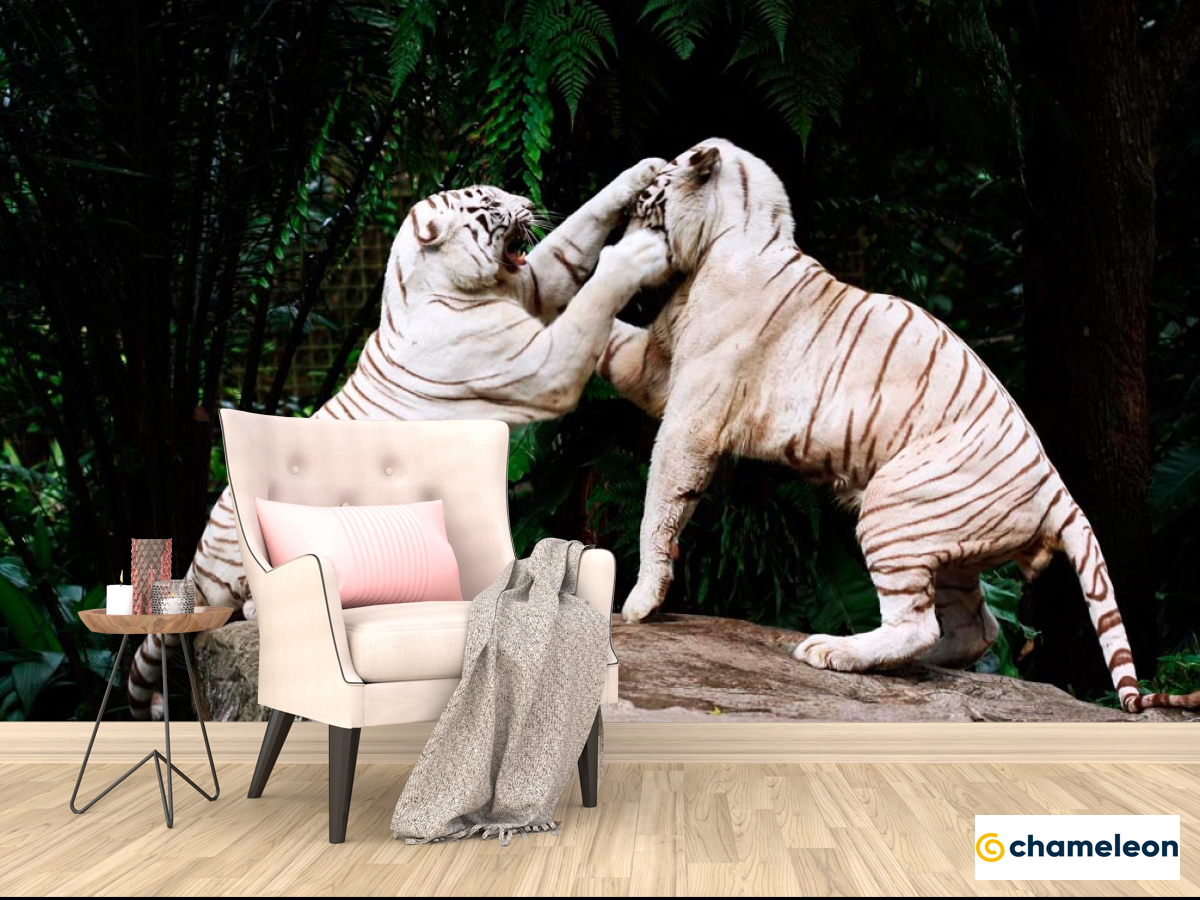 Фотообои «Фотообои Драка белых тигров», (арт. 9845) - купить в интернет-магазине Хамелеон