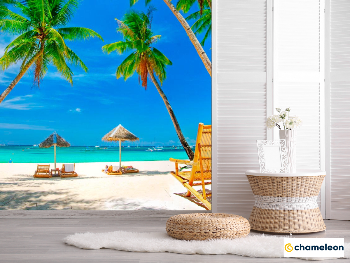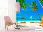 Фотошпалери «Фотошпалери Шезлонг, пальми, пляж», (арт. 0531) - купити в інтернет-магазині «Будинок Фотошпалер» Хамелеон
