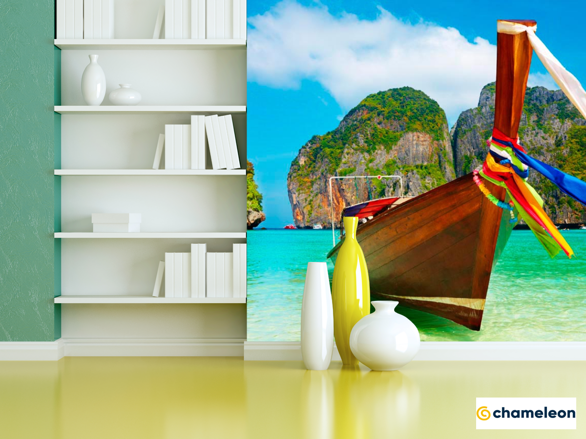 Фотошпалери «Фотошпалери Човен в бірюзових водах», (арт. 0564) - купити в інтернет-магазині «Будинок Фотошпалер» Хамелеон