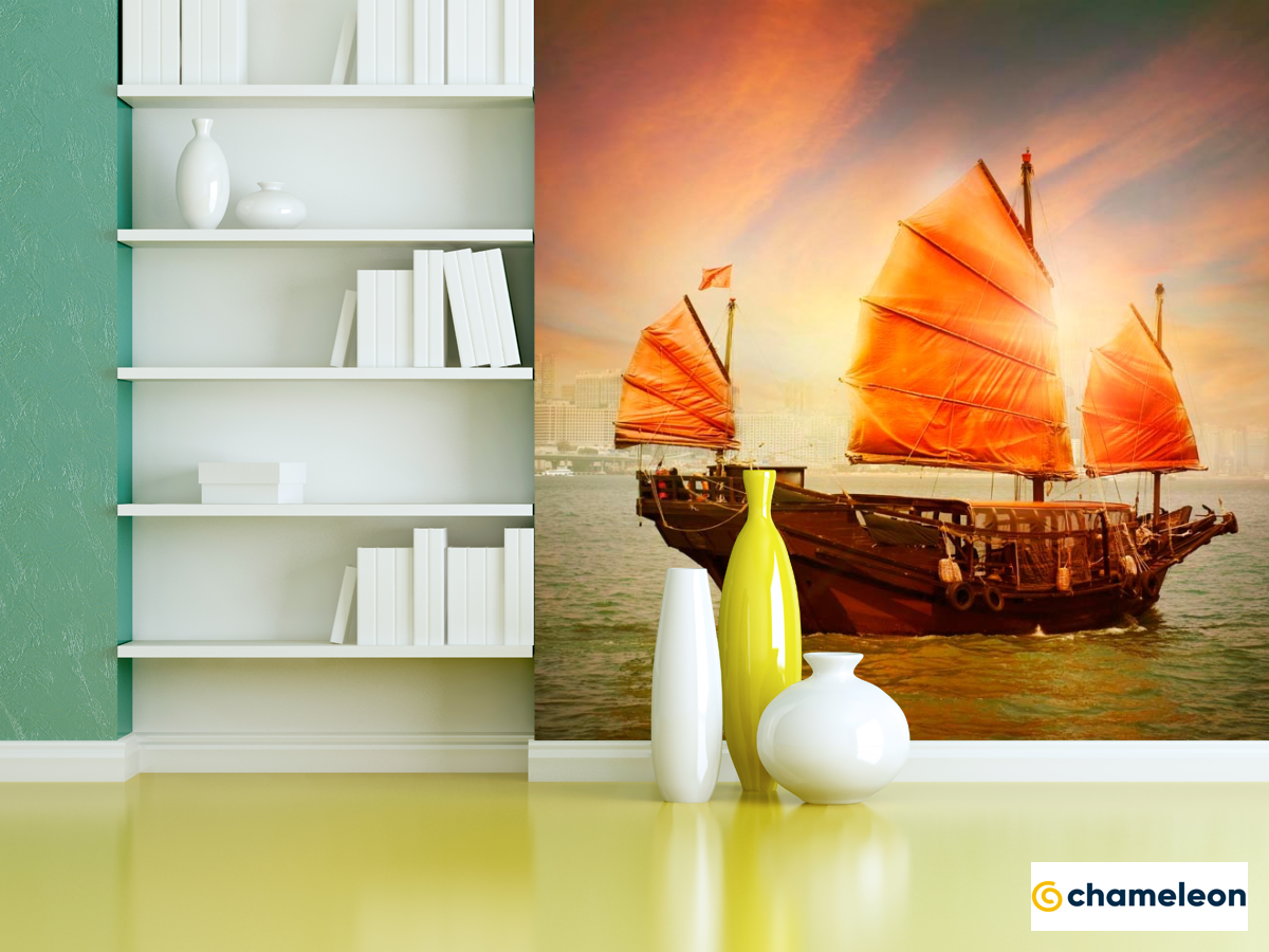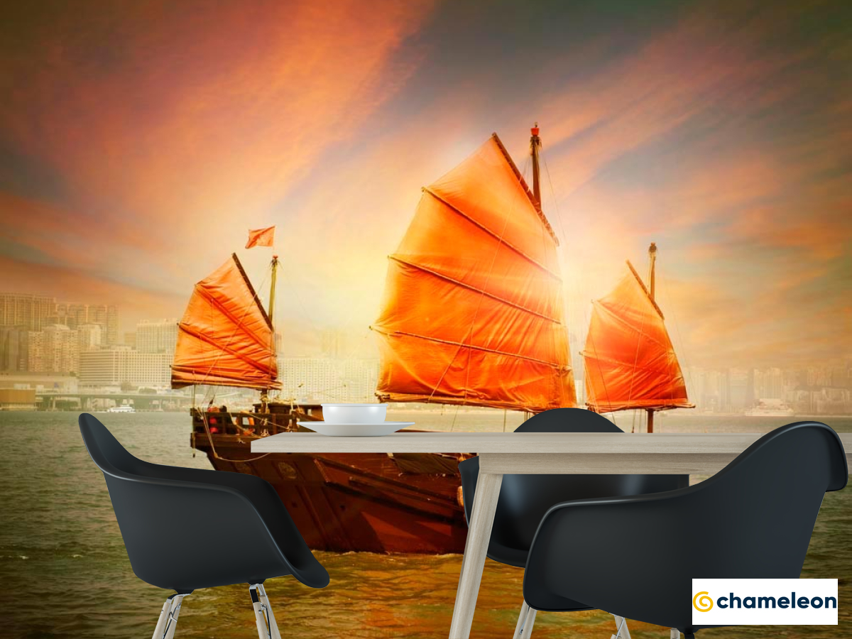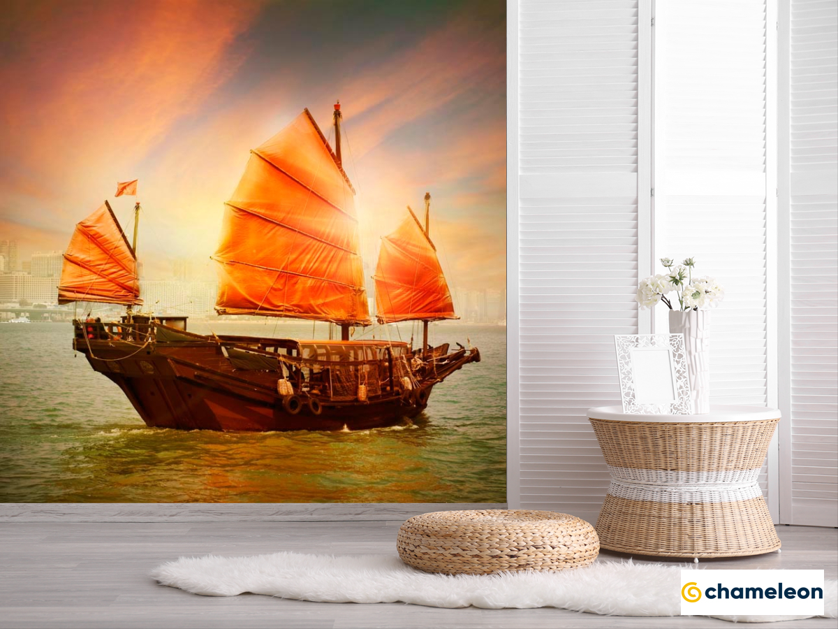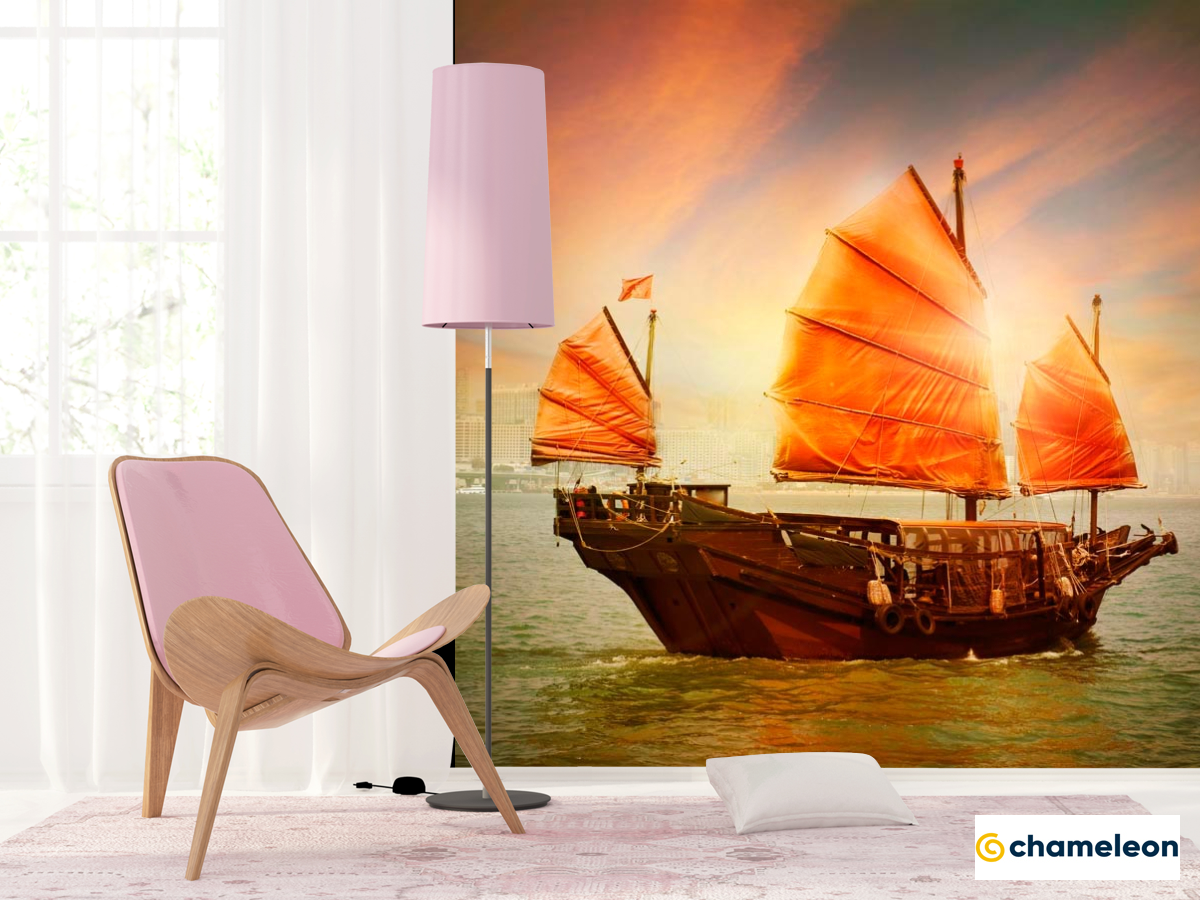 Фотошпалери «Фотошпалери Корабель з помаранчевими вітрилами», (арт. 0612) - купити в інтернет-магазині «Будинок Фотошпалер» Хамелеон