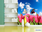 Фотошпалери «Фотошпалери Метелики і рожеві тюльпани», (арт. 10354) - купити в інтернет-магазині «Будинок Фотошпалер» Хамелеон