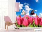 Фотошпалери Метелики і рожеві тюльпани