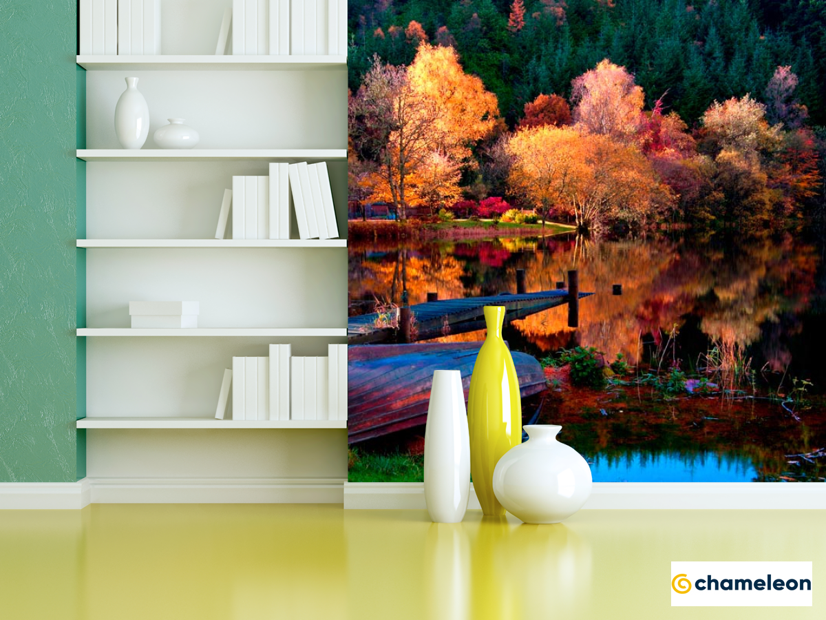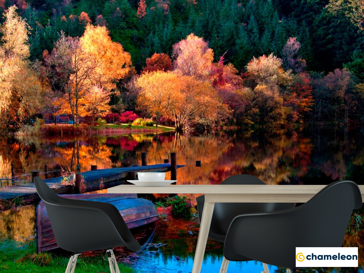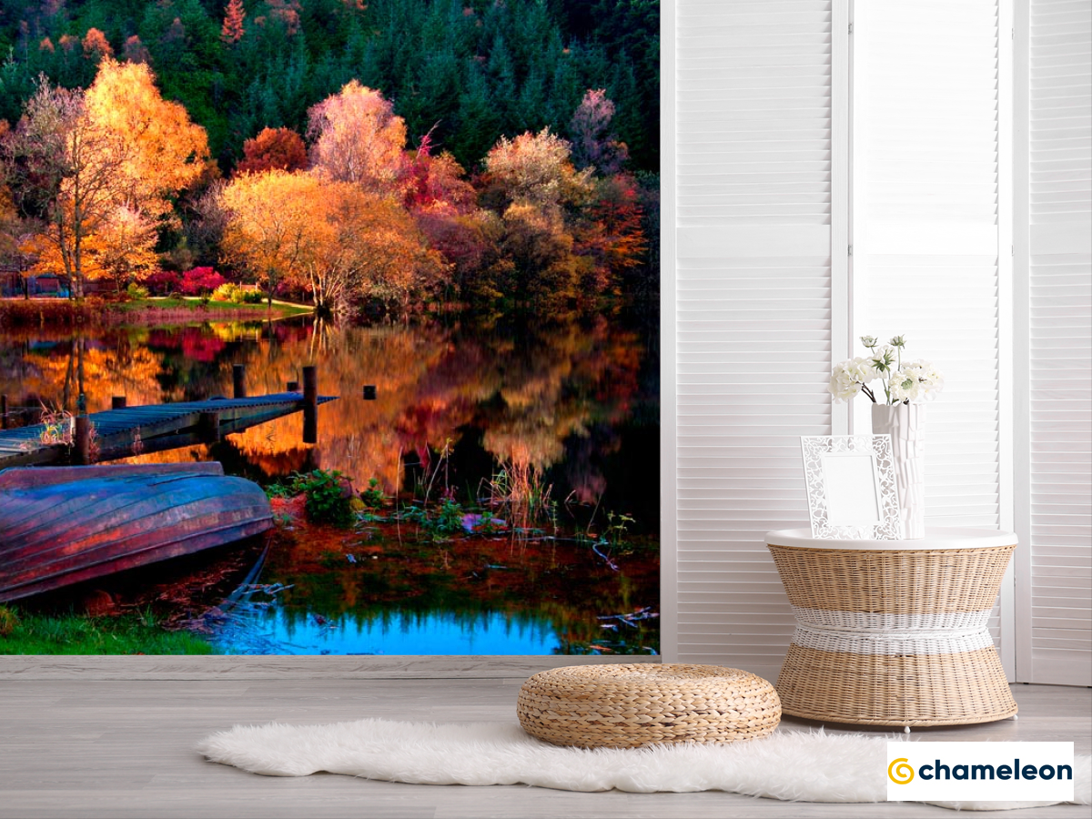 Фотошпалери «Фотошпалери Під осінь, човен», (арт. 12594) - купити в інтернет-магазині «Будинок Фотошпалер» Хамелеон