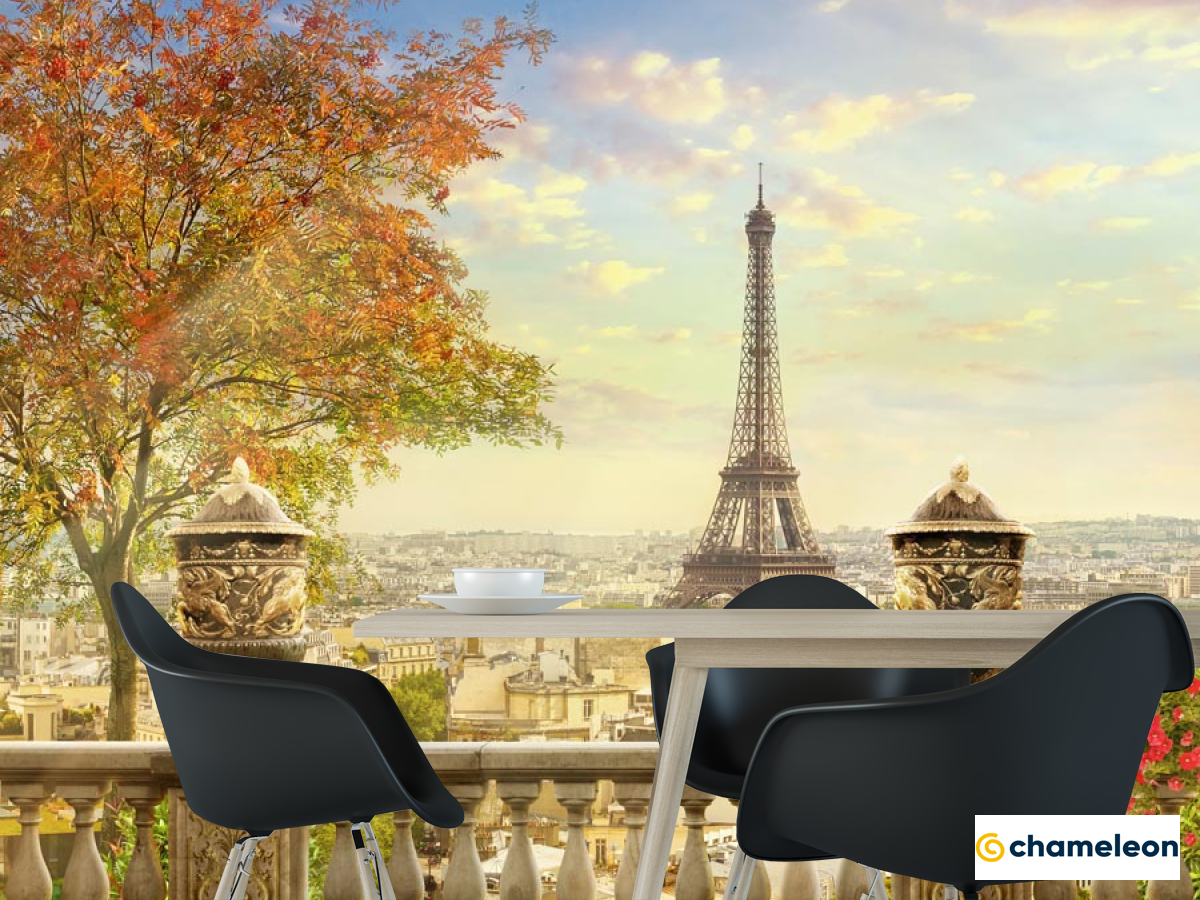 Фотошпалери «Фотошпалери Балкон, місто, дерево», (арт. 13618) - купити в інтернет-магазині «Будинок Фотошпалер» Хамелеон