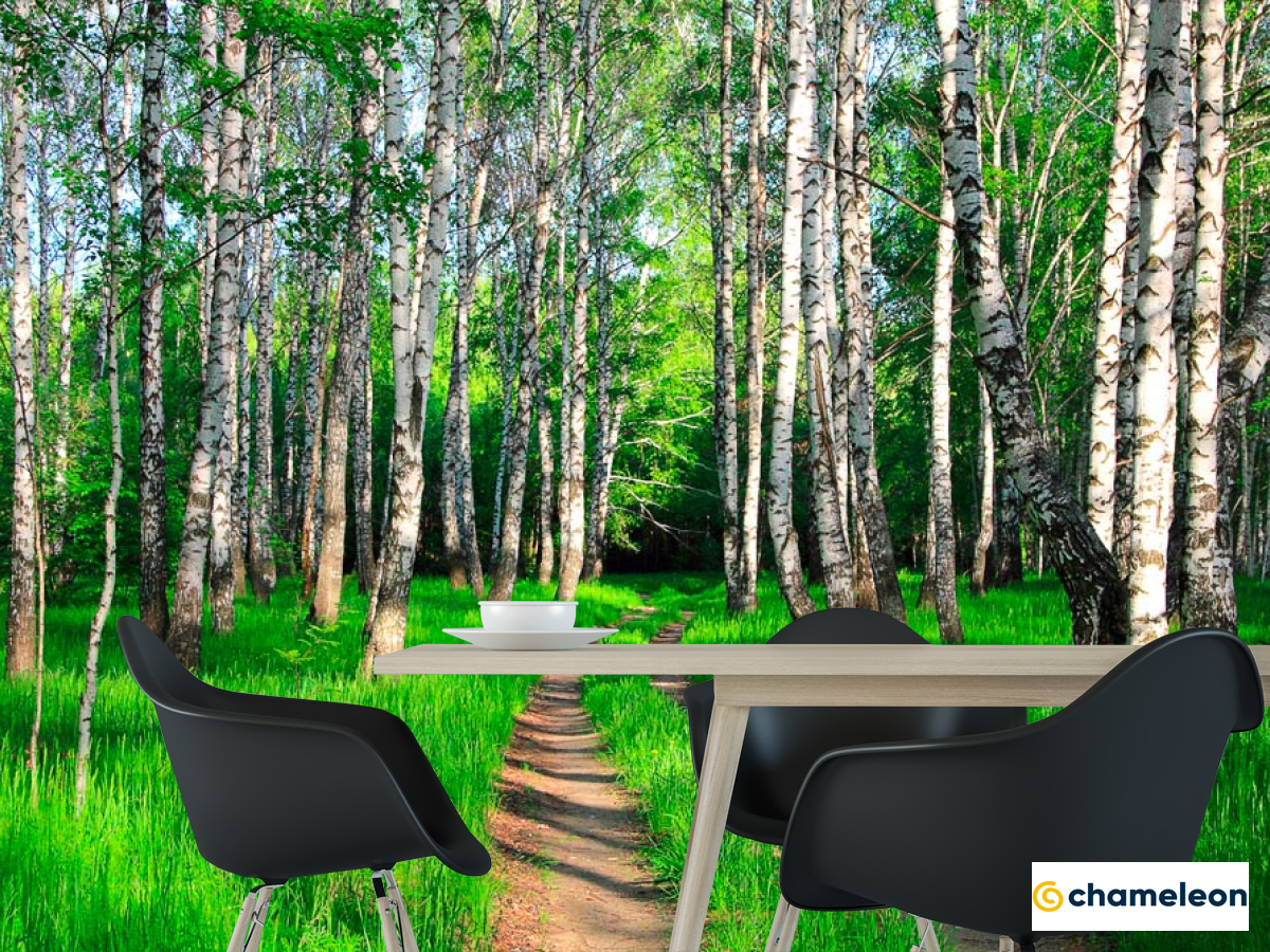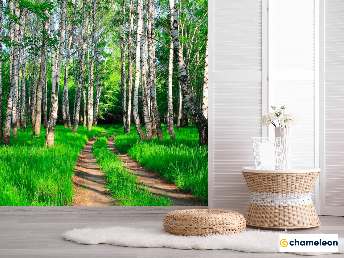 Фотошпалери «Фотошпалери Дорога, берізки, ліс», (арт. 13647) - купити в інтернет-магазині «Будинок Фотошпалер» Хамелеон