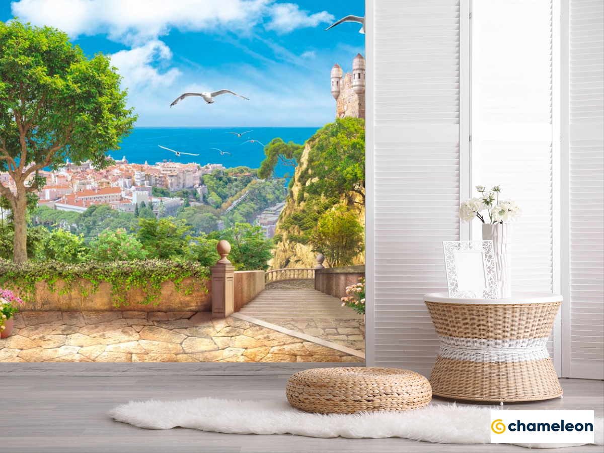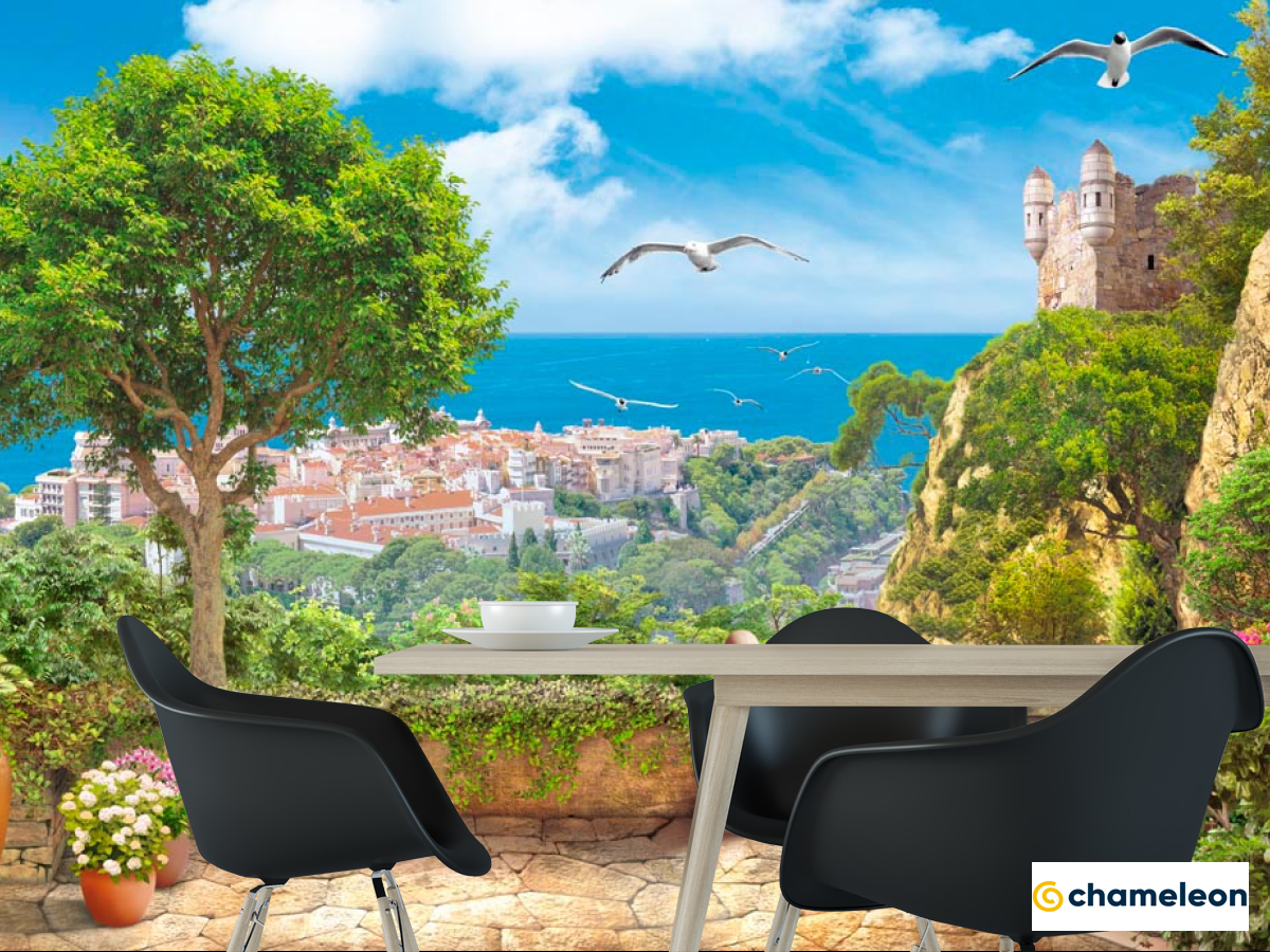 Фотошпалери «Фотошпалери Місто, чайки, дерева», (арт. 15168) - купити в інтернет-магазині «Будинок Фотошпалер» Хамелеон