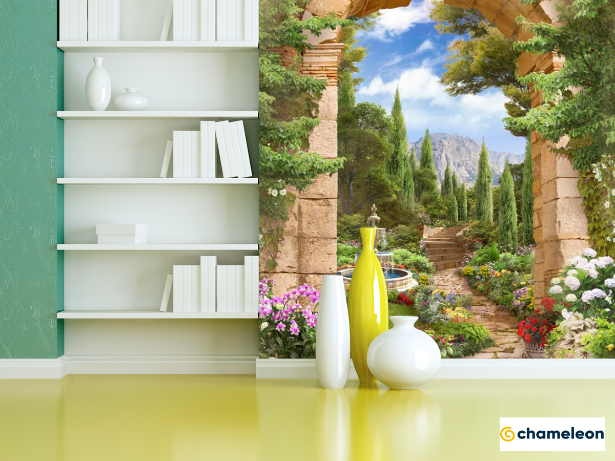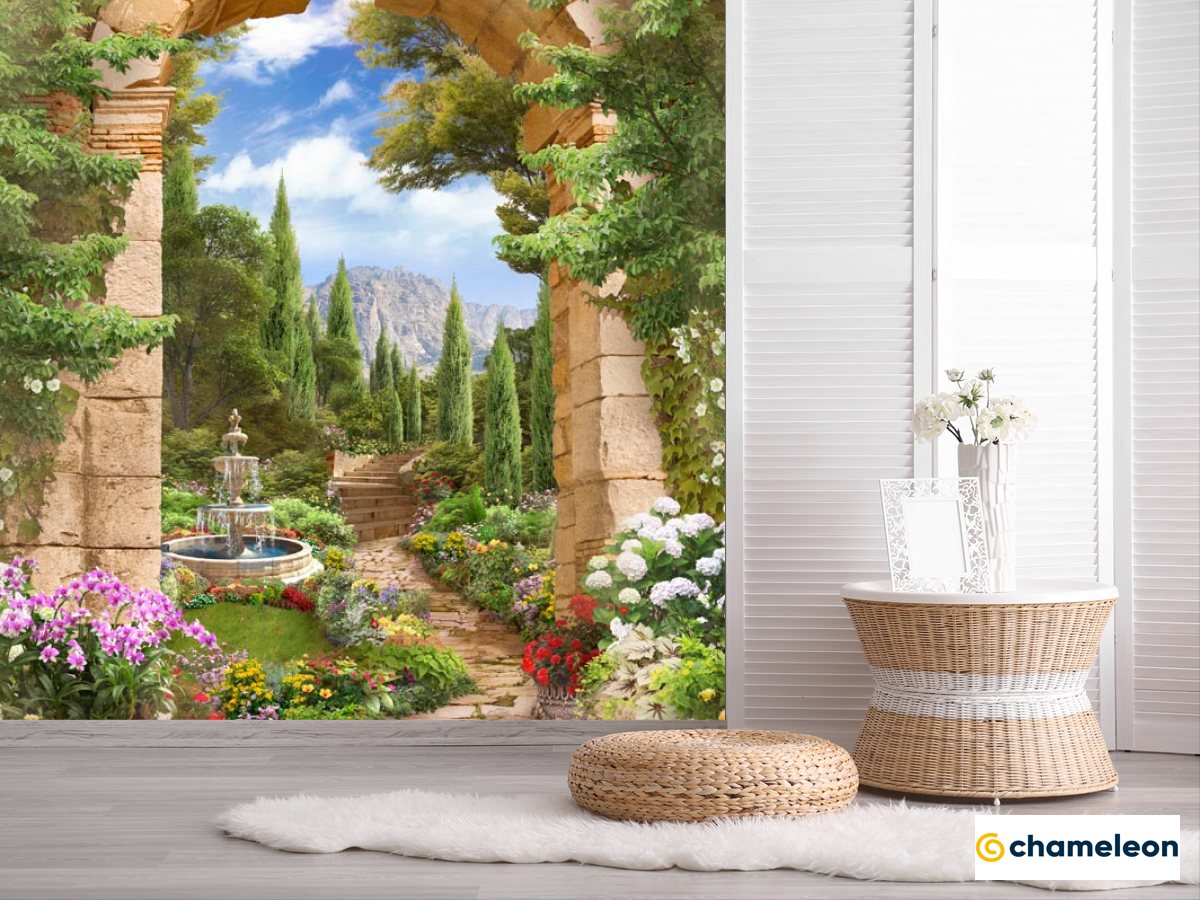 Фотошпалери «Фотошпалери Фонтан, арка, сад», (арт. 16344) - купити в інтернет-магазині «Будинок Фотошпалер» Хамелеон