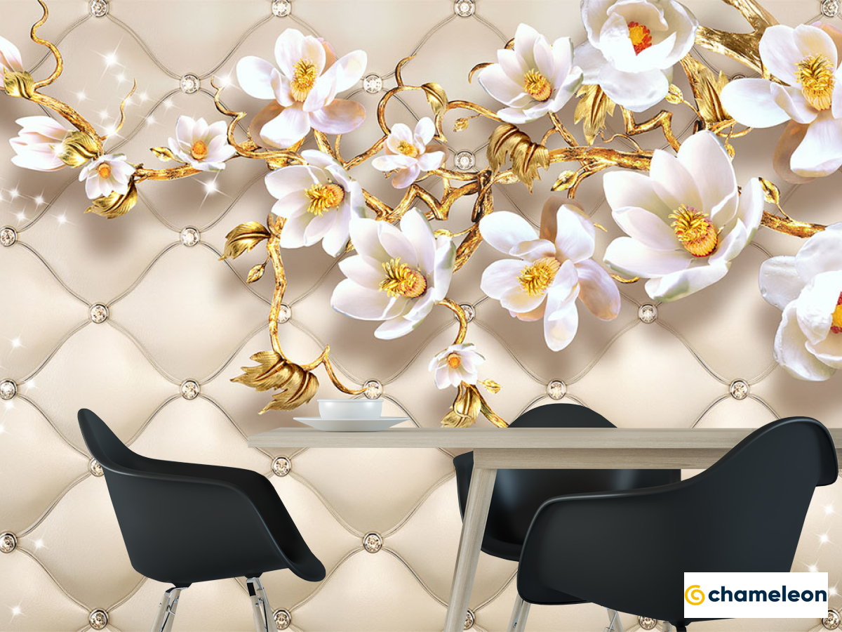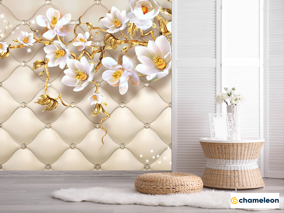 Фотошпалери «Фотошпалери золоті квіти на каретній стяжці», (арт. 18792g) - купити в інтернет-магазині «Будинок Фотошпалер» Хамелеон