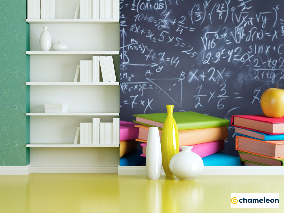Фотошпалери «Фотошпалери Крейдована дошка та книги», (арт. 19731) - купити в інтернет-магазині «Будинок Фотошпалер» Хамелеон