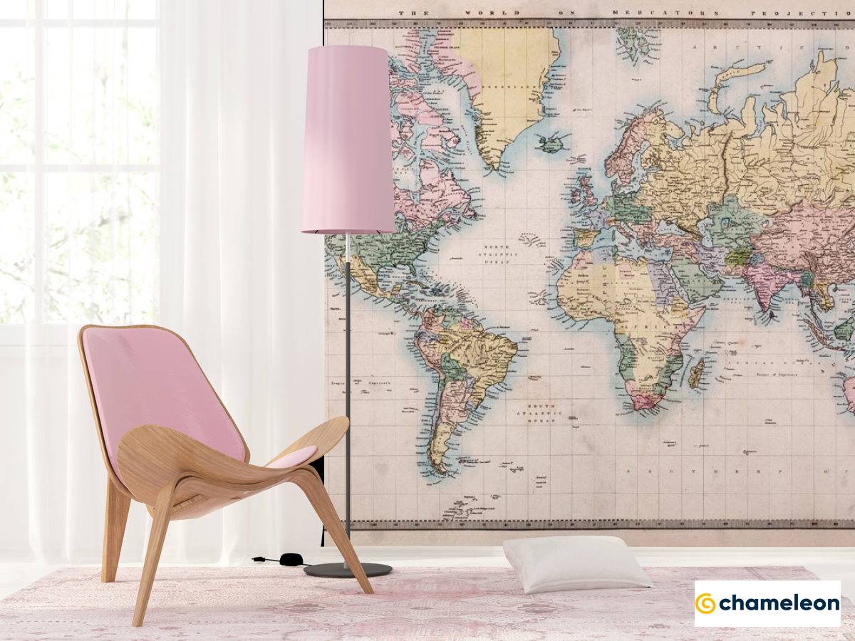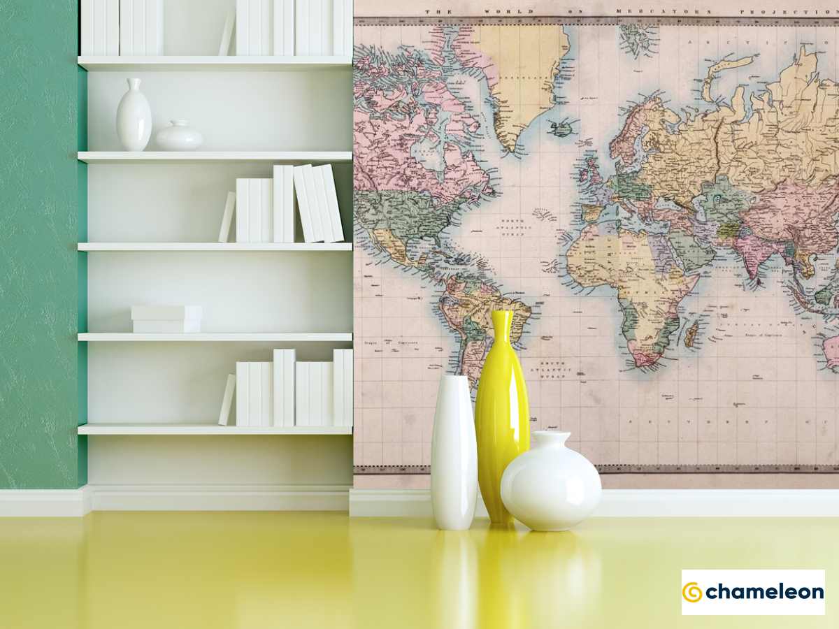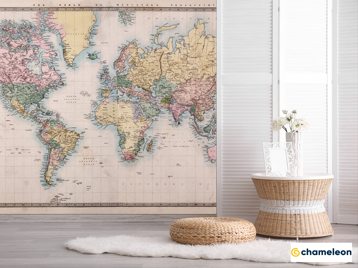 Фотошпалери «Фотошпалери Карта світу з маштабом», (арт. 20607) - купити в інтернет-магазині «Будинок Фотошпалер» Хамелеон