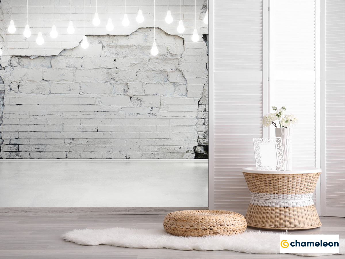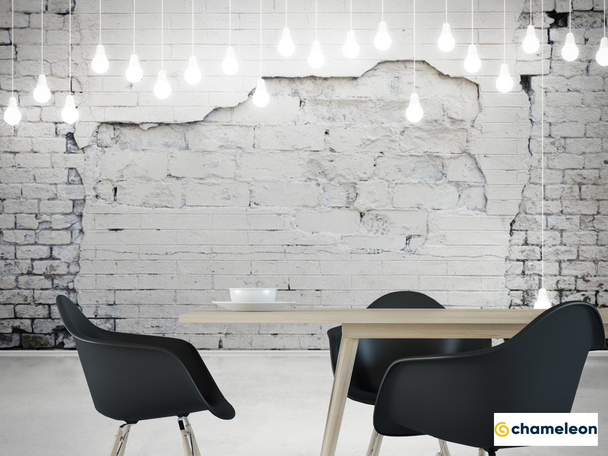 Фотошпалери «Фотошпалери Біла стіна з лампочками», (арт. 20635) - купити в інтернет-магазині «Будинок Фотошпалер» Хамелеон