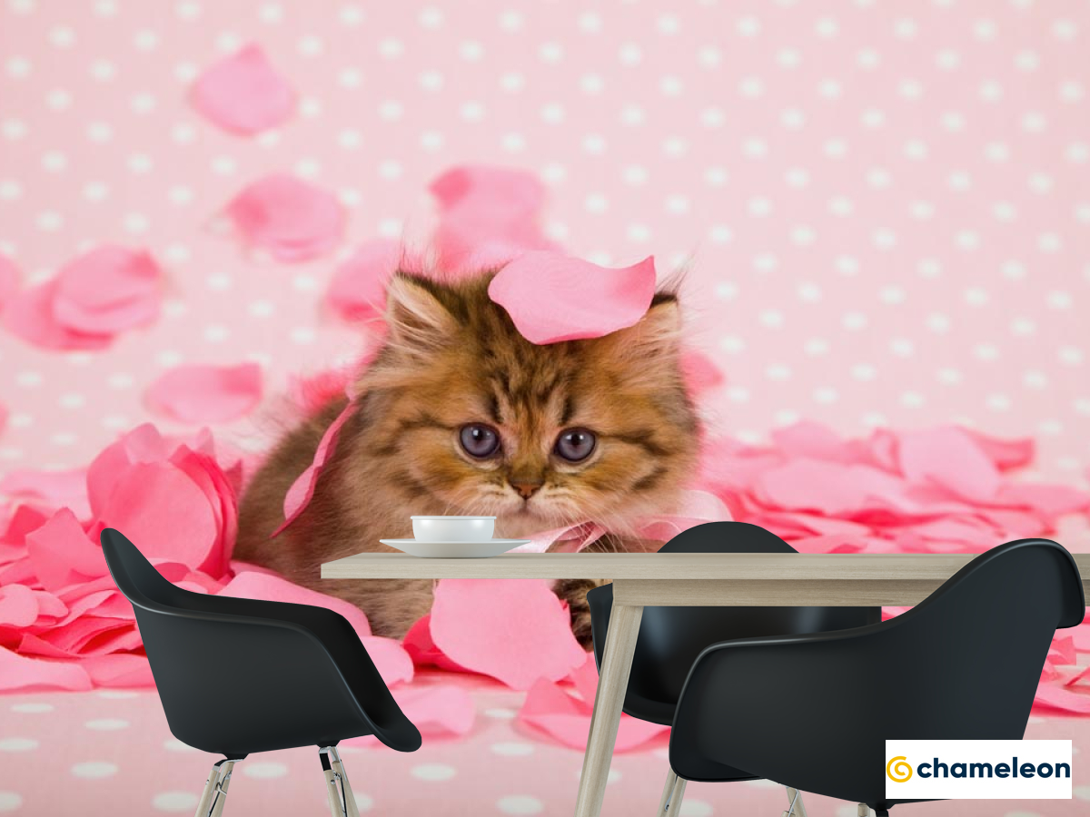 Фотошпалери «Фотошпалери кошеня в пелюстках троянд», (арт. 20677) - купити в інтернет-магазині «Будинок Фотошпалер» Хамелеон