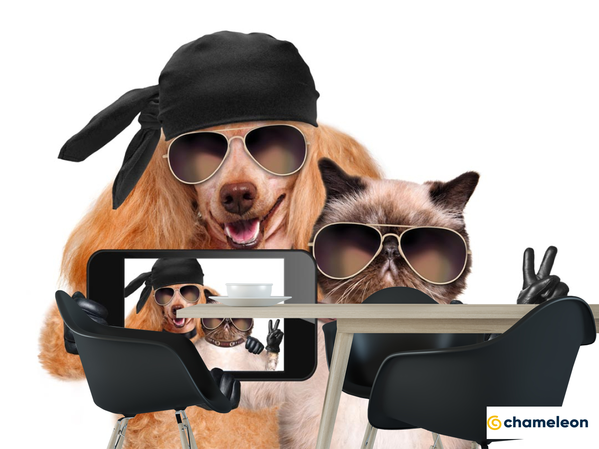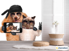 Фотошпалери «Фотошпалери кіт з собакою роблять селфи», (арт. 20754) - купити в інтернет-магазині «Будинок Фотошпалер» Хамелеон