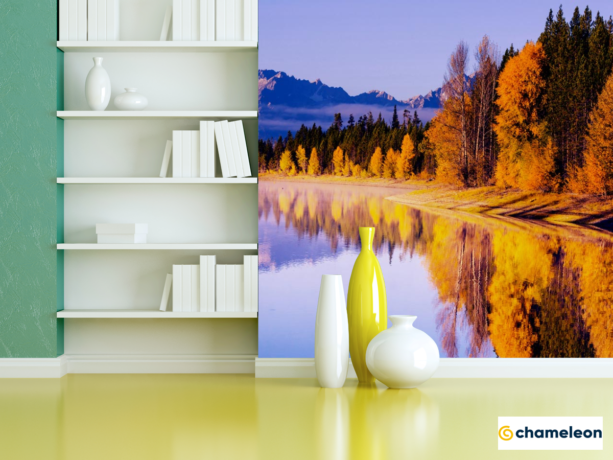 Фотошпалери «Фотошпалери осінні дерева над озером», (арт. 20821) - купити в інтернет-магазині «Будинок Фотошпалер» Хамелеон