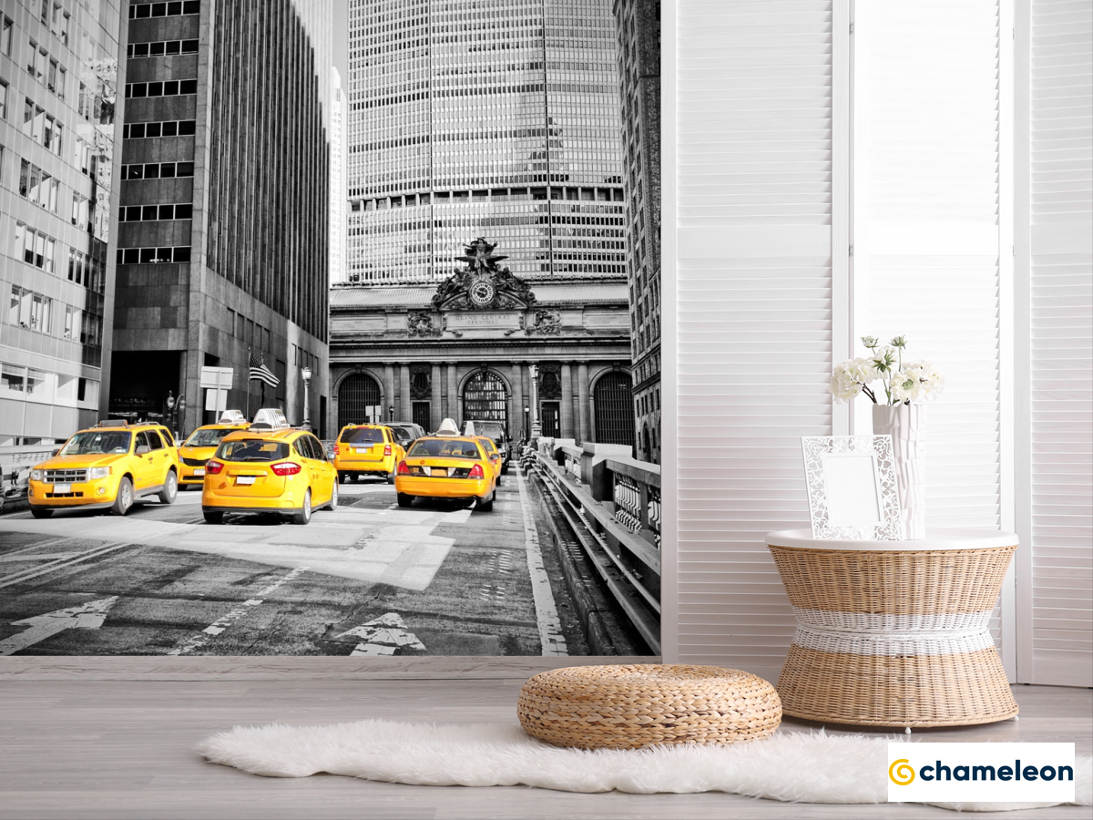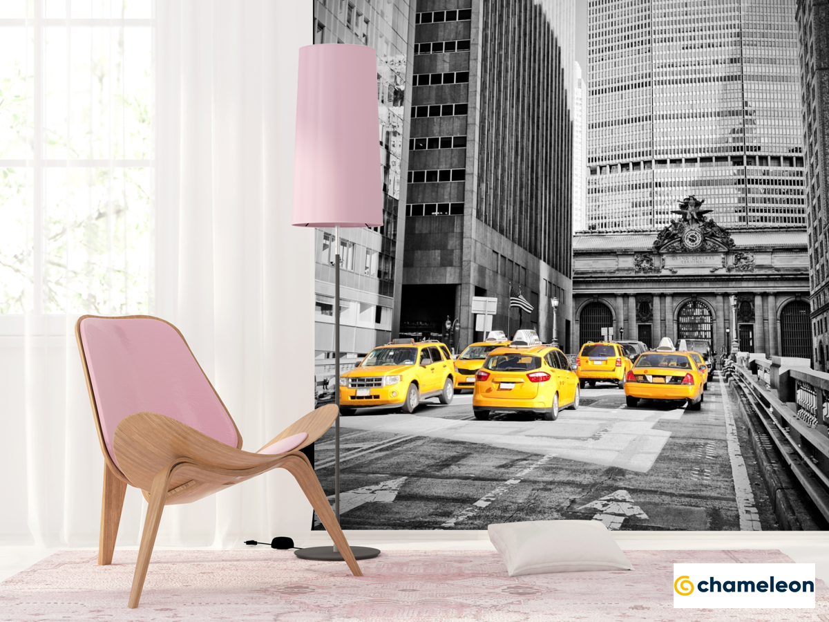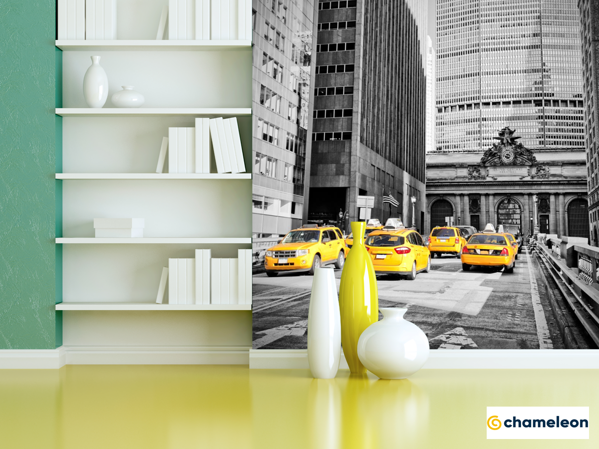 Фотошпалери «Фотошпалери жовті автомобілі в місті», (арт. 20835) - купити в інтернет-магазині «Будинок Фотошпалер» Хамелеон