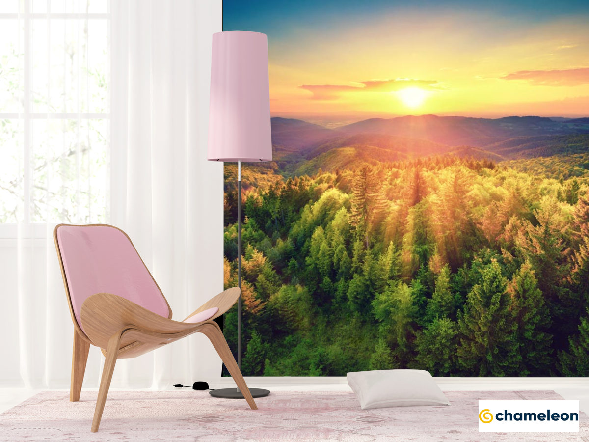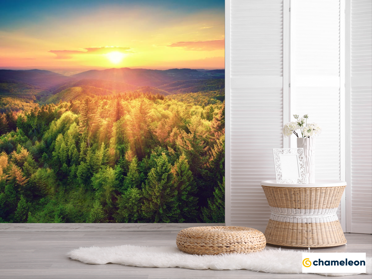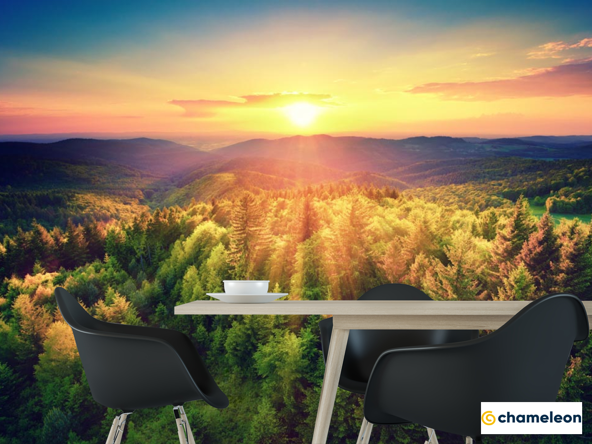 Фотошпалери «Фотошпалери захід сонця над сосновим лісом», (арт. 20897) - купити в інтернет-магазині «Будинок Фотошпалер» Хамелеон