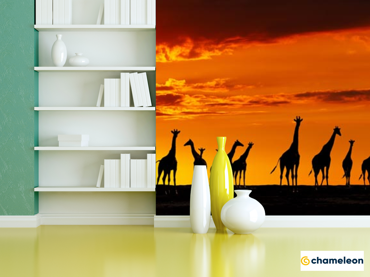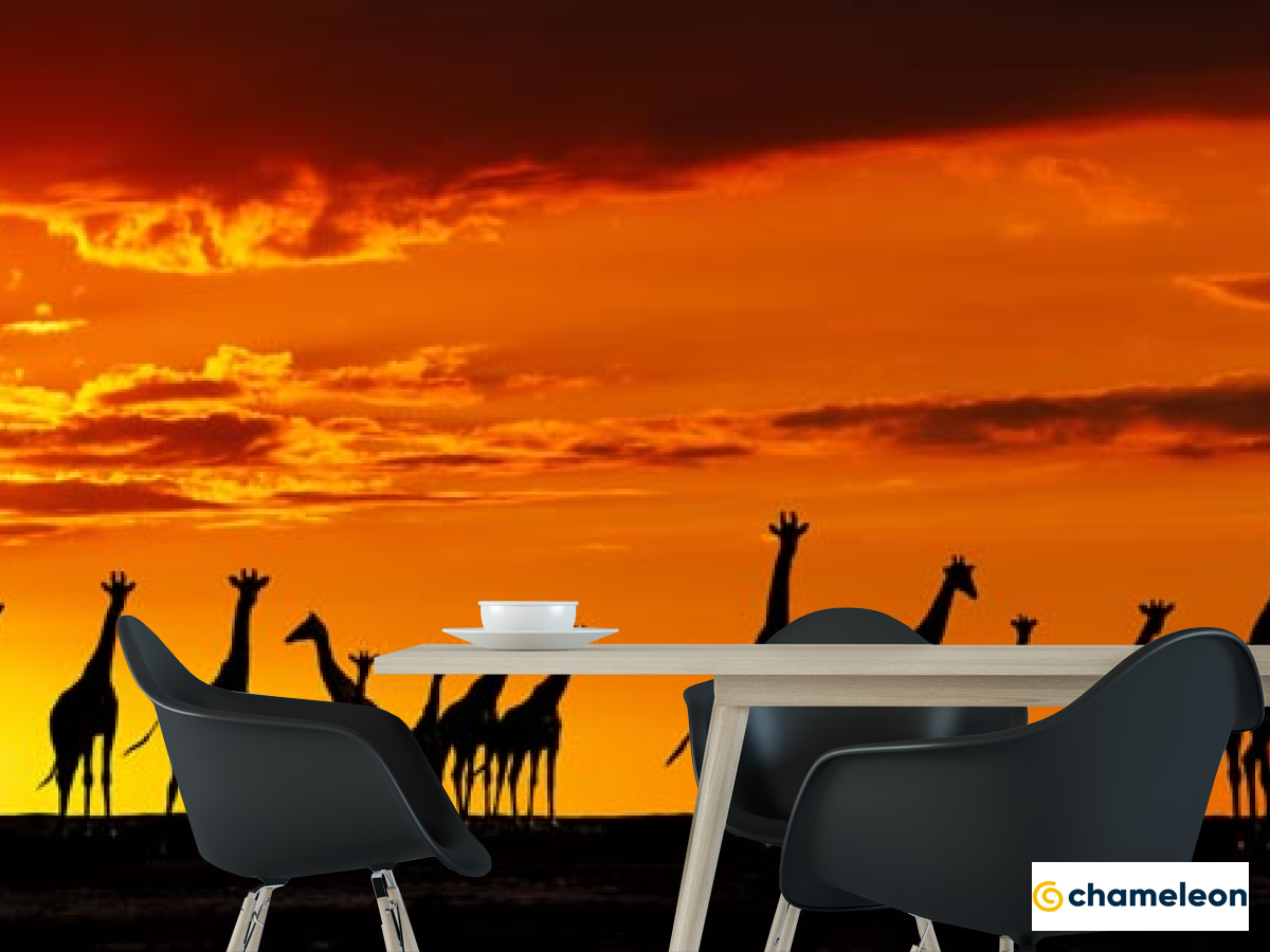 Фотошпалери «Фотошпалери багато жирафів і захід», (арт. 20902) - купити в інтернет-магазині «Будинок Фотошпалер» Хамелеон