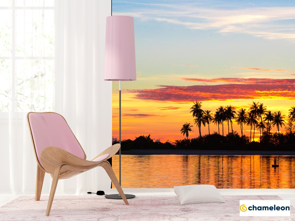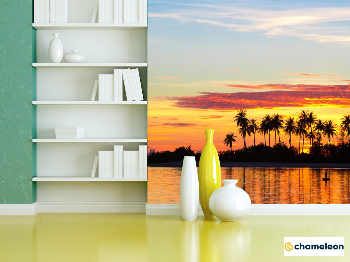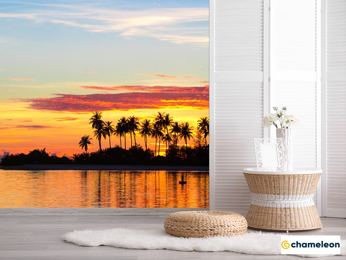 Фотошпалери «Фотошпалери пальми і захід сонця над морем», (арт. 21062) - купити в інтернет-магазині «Будинок Фотошпалер» Хамелеон