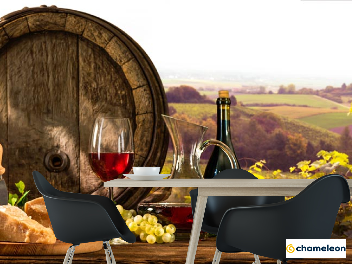 Фотошпалери «Фотошпалери бочка, сир і вино», (арт. 21089) - купити в інтернет-магазині «Будинок Фотошпалер» Хамелеон