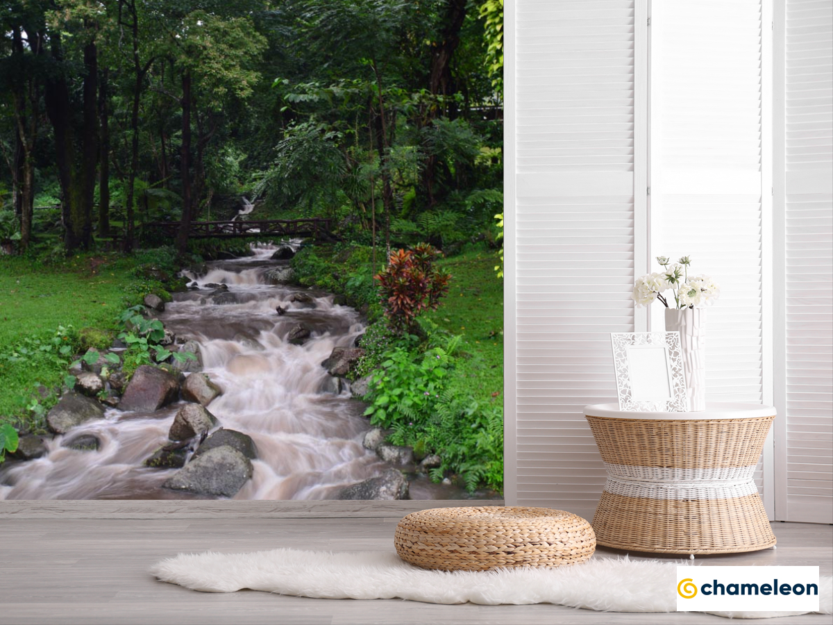Фотошпалери сірий водоспадик на струмку