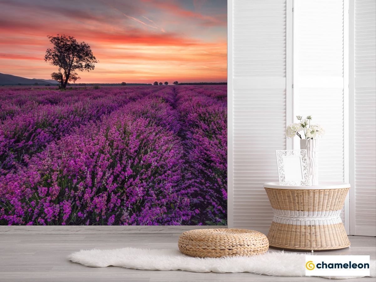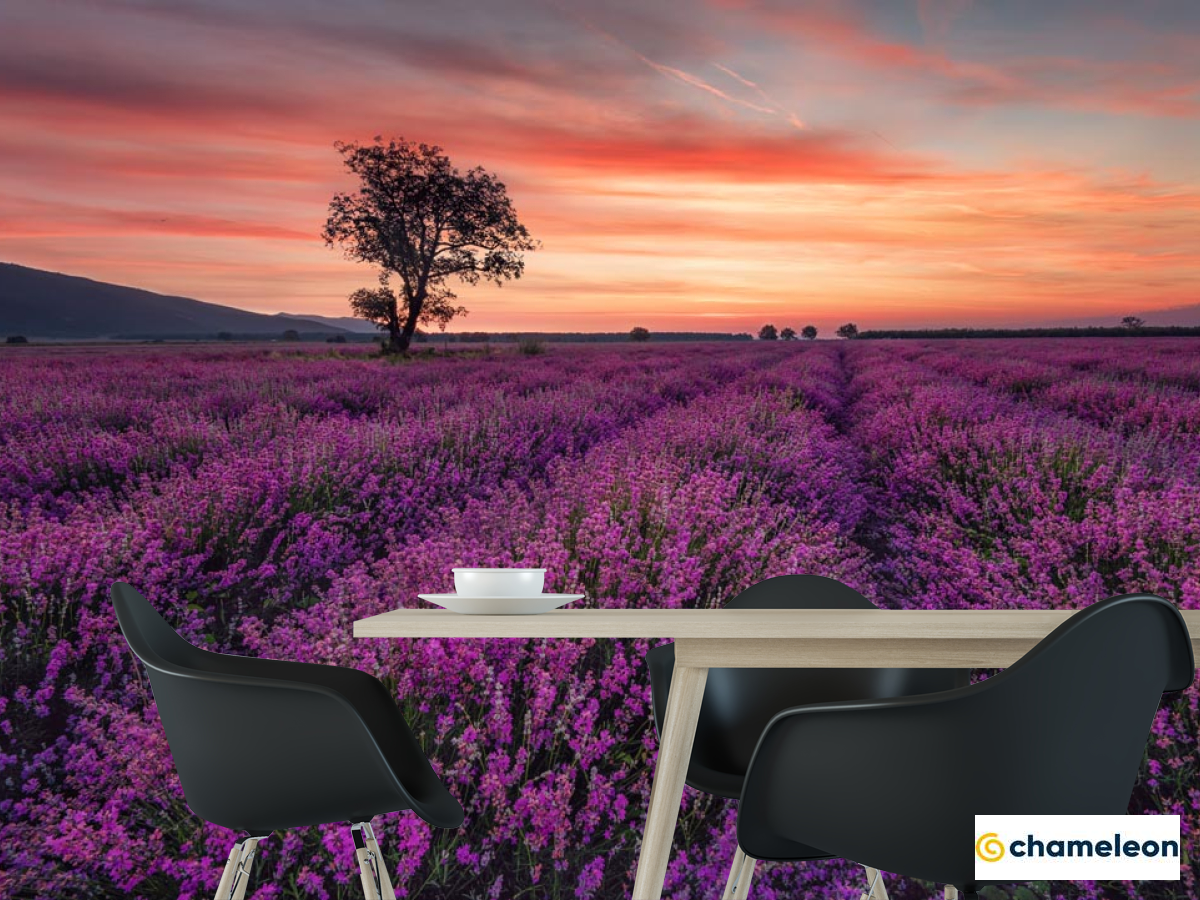 Фотошпалери «Фотошпалери бузкове поле і рожевий захід», (арт. 21216) - купити в інтернет-магазині «Будинок Фотошпалер» Хамелеон