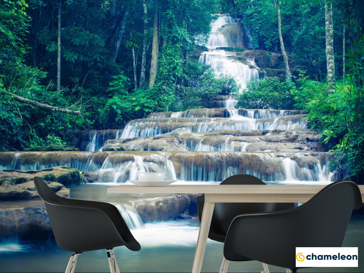 Фотошпалери «Фотошпалери ступінчастий водоспад у лісі», (арт. 21232) - купити в інтернет-магазині «Будинок Фотошпалер» Хамелеон