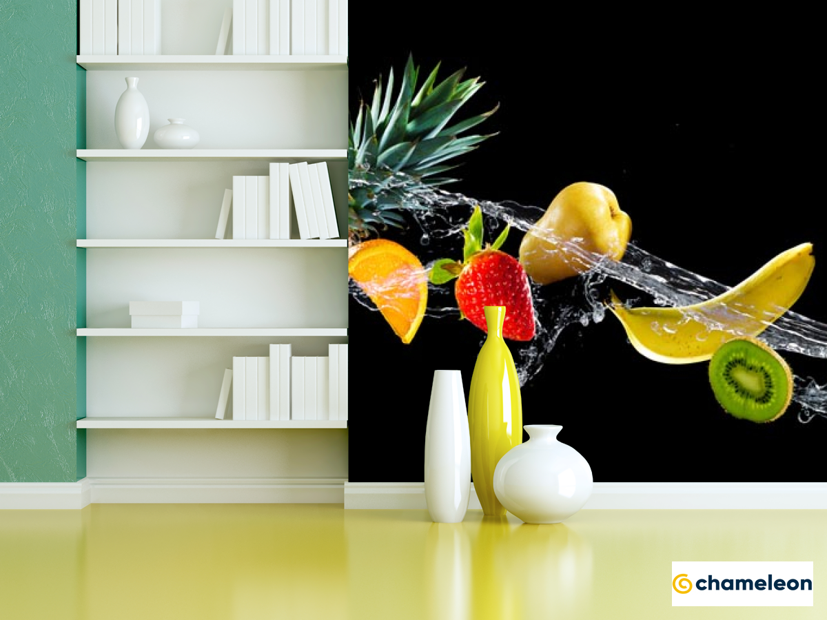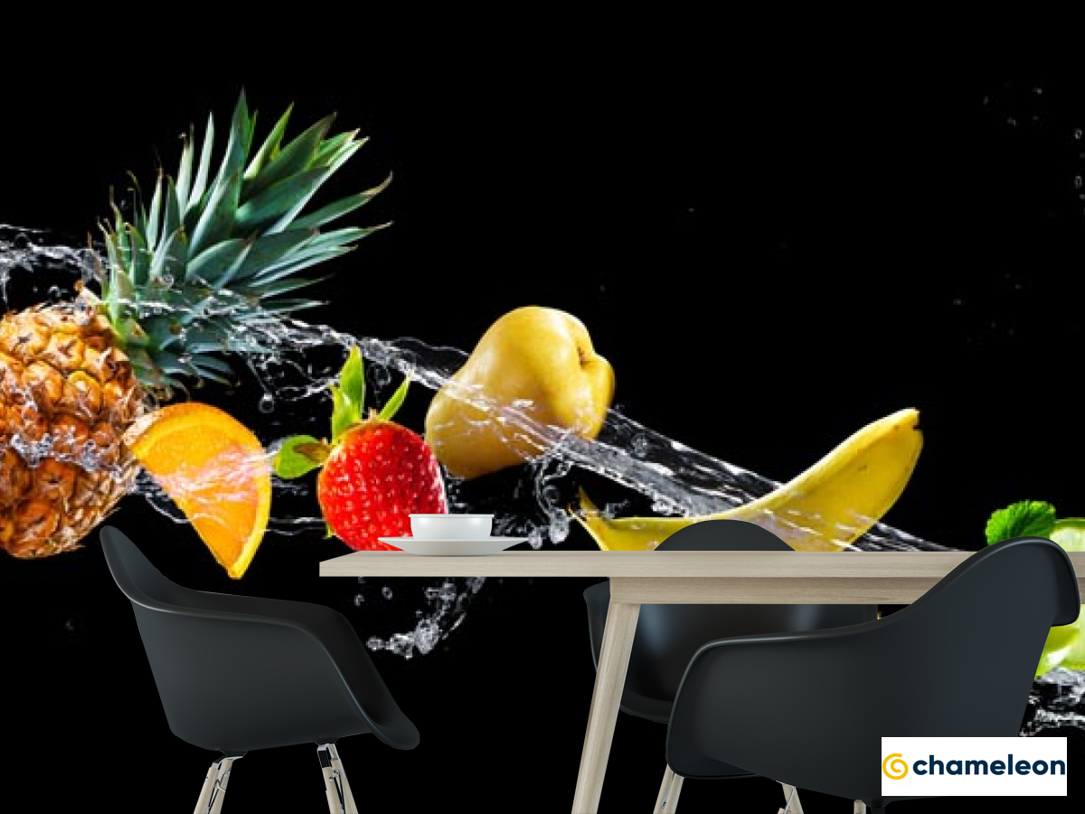 Фотошпалери «Фотошпалери фрукти і вода на чорному тлі», (арт. 21330) - купити в інтернет-магазині «Будинок Фотошпалер» Хамелеон