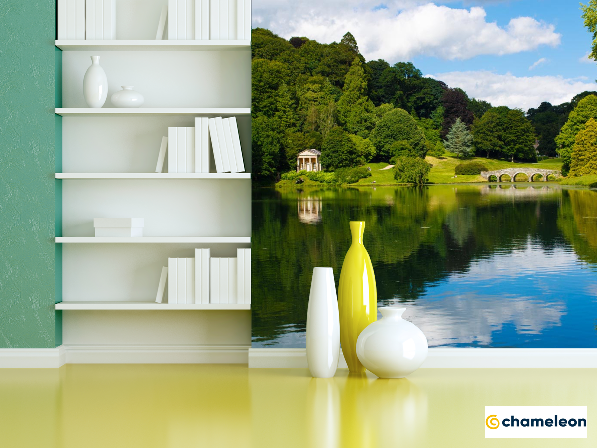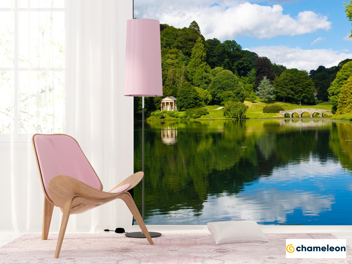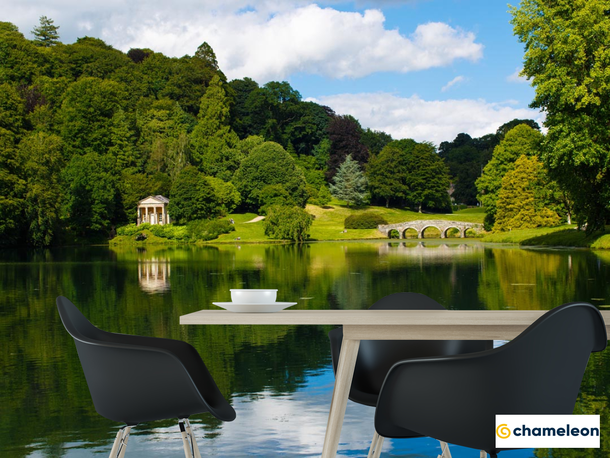 Фотошпалери «Фотошпалери будиночок і місток над озером», (арт. 21379) - купити в інтернет-магазині «Будинок Фотошпалер» Хамелеон