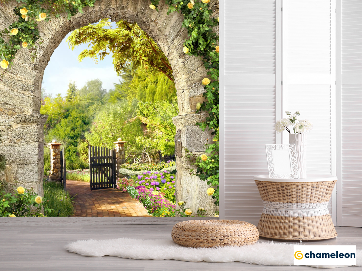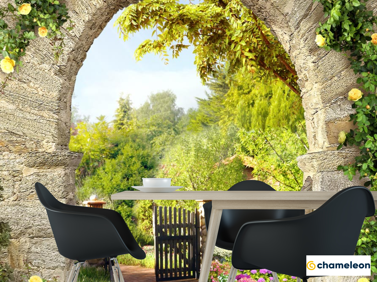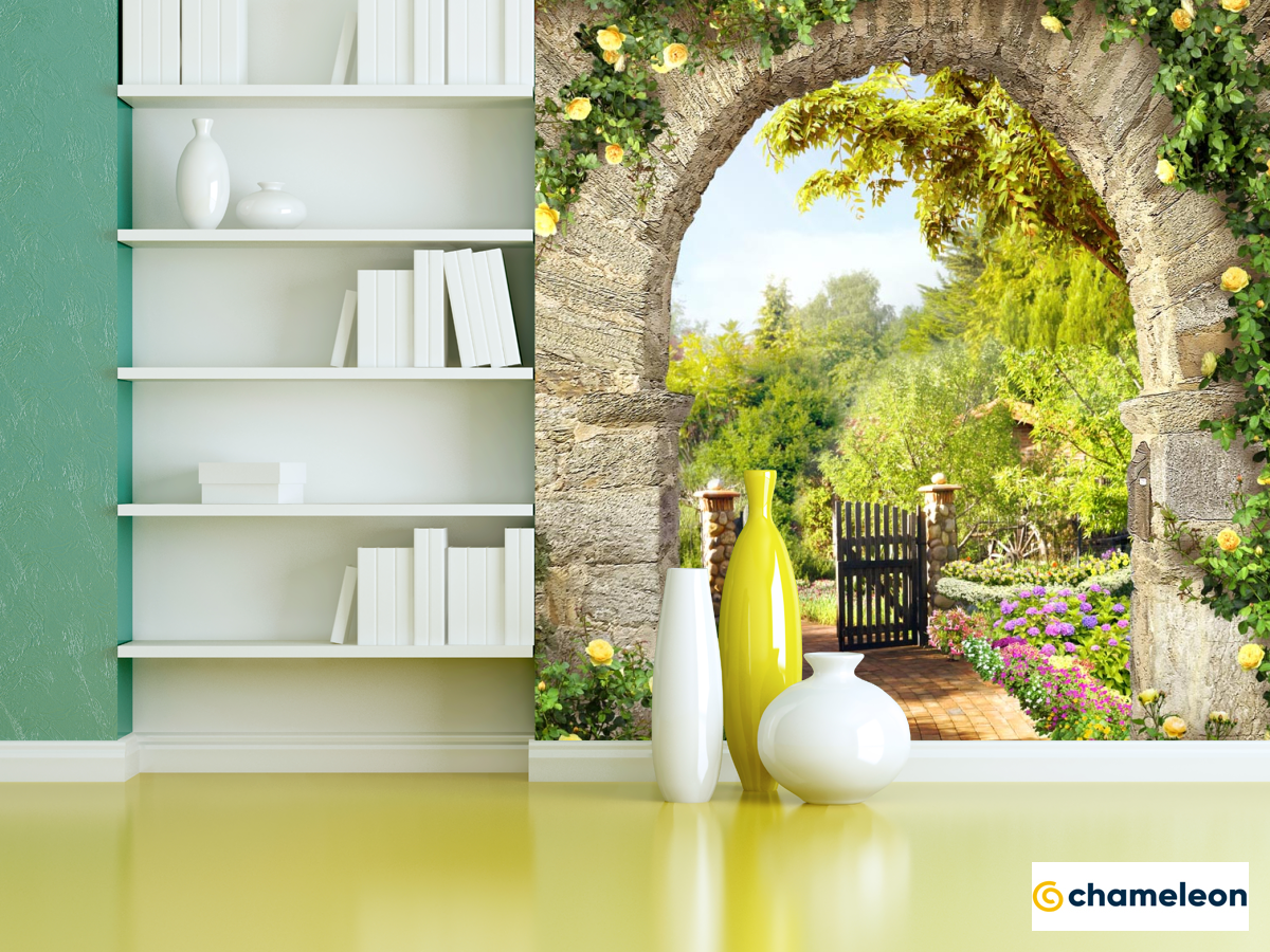 Фотошпалери «Фотошпалери жовті троянди на кам'яної арки», (арт. 21459) - купити в інтернет-магазині «Будинок Фотошпалер» Хамелеон