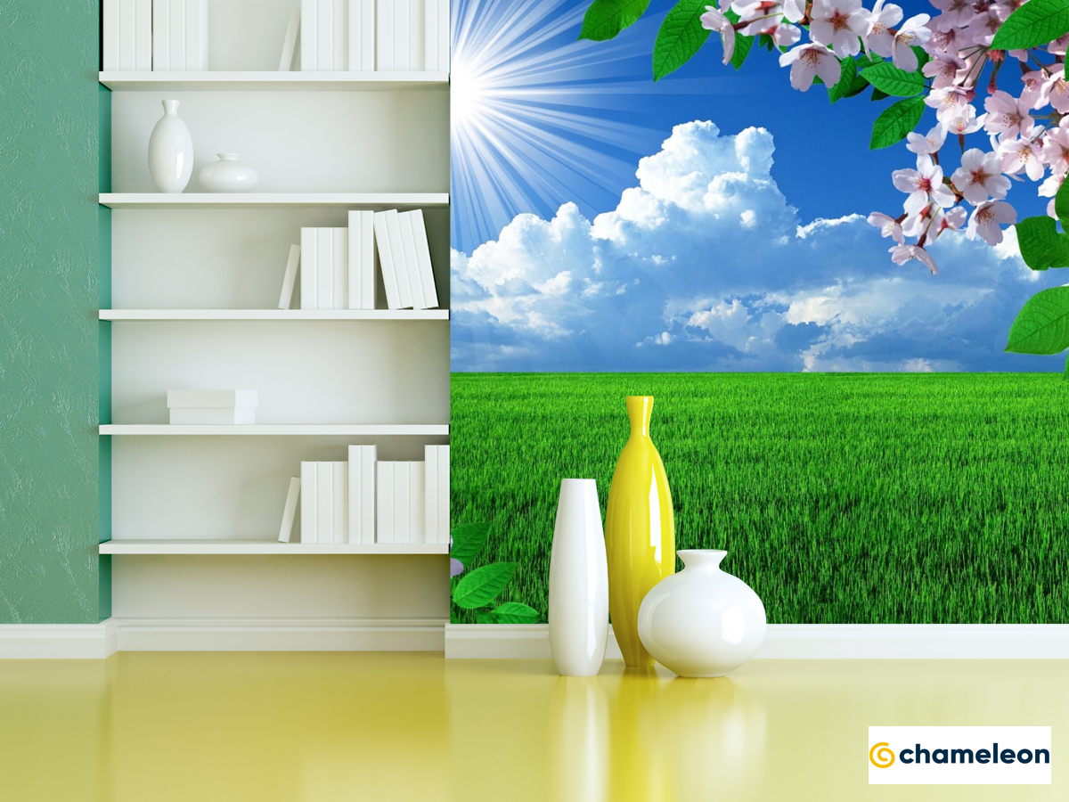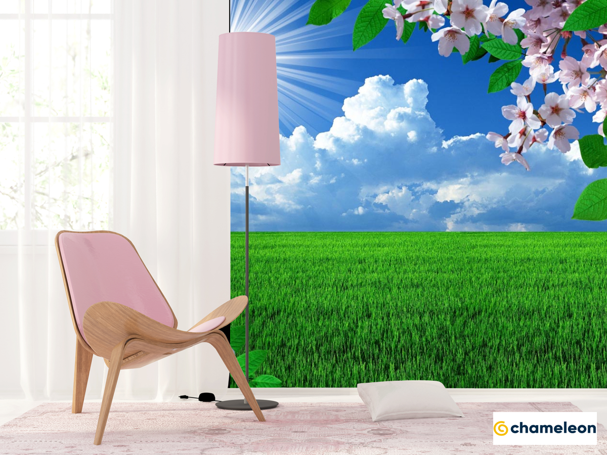 Фотошпалери абрикосовий колір над зеленим полем