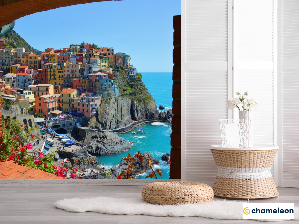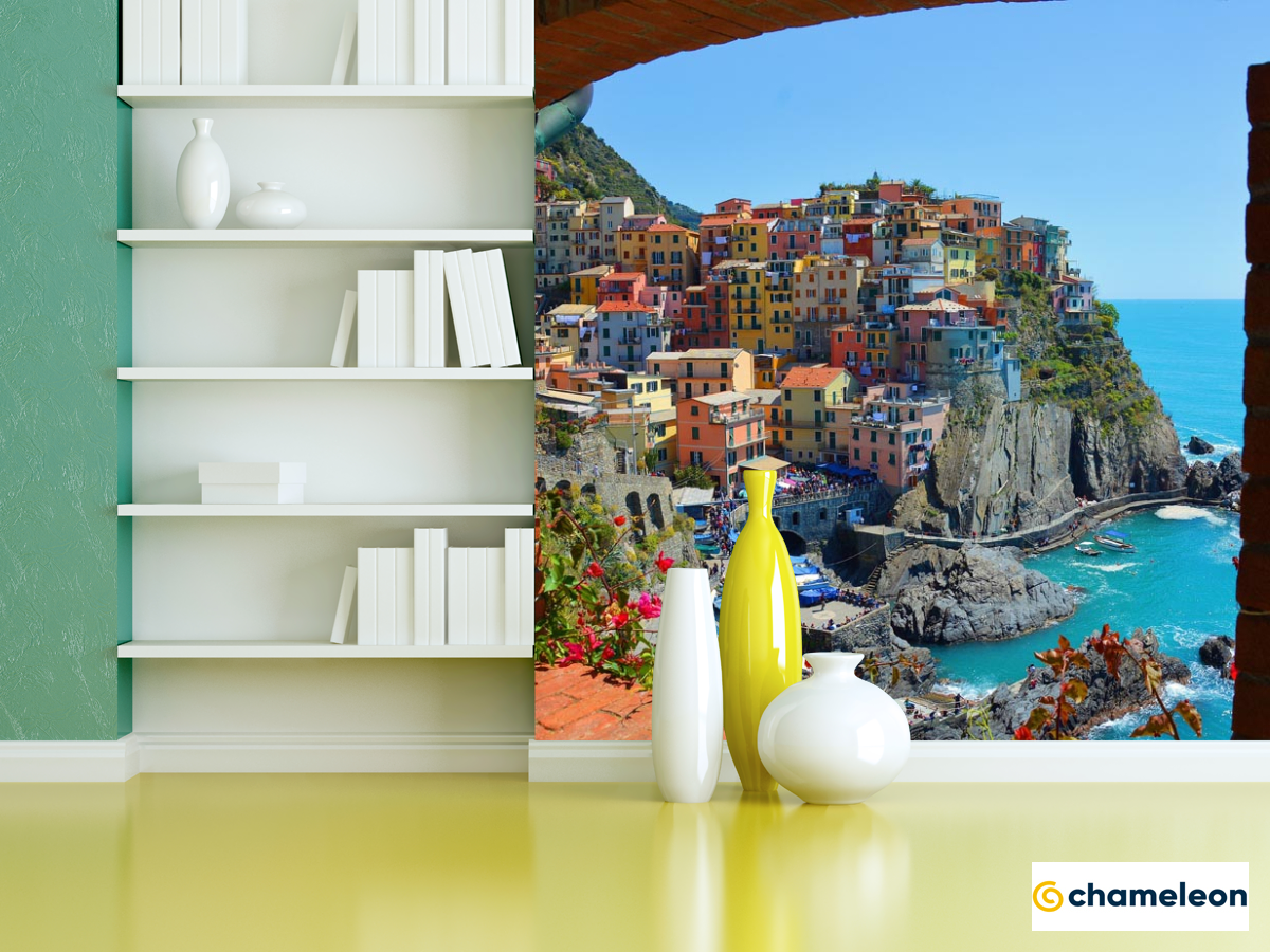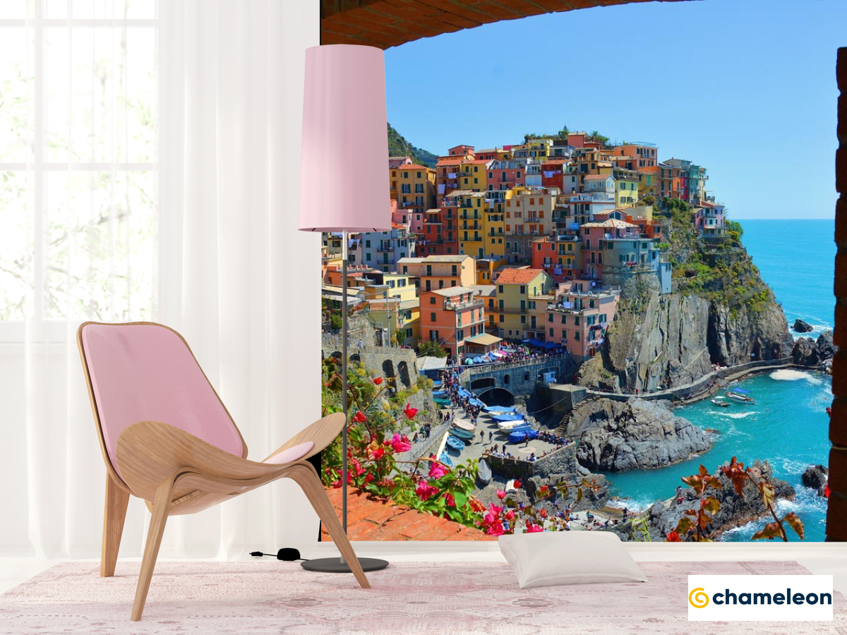 Фотошпалери «Фотошпалери різнокольорові будиночки над морем», (арт. 21518) - купити в інтернет-магазині «Будинок Фотошпалер» Хамелеон