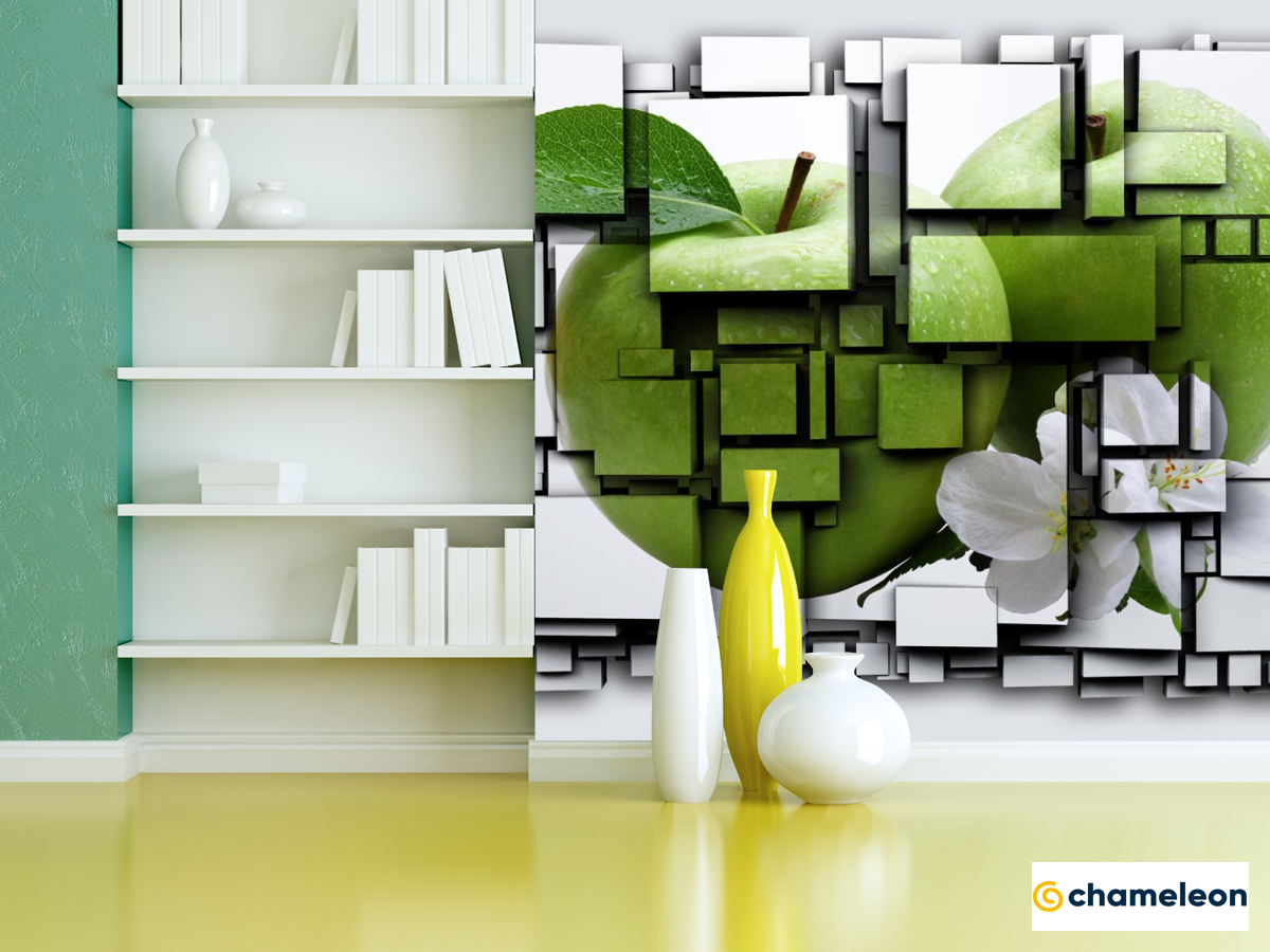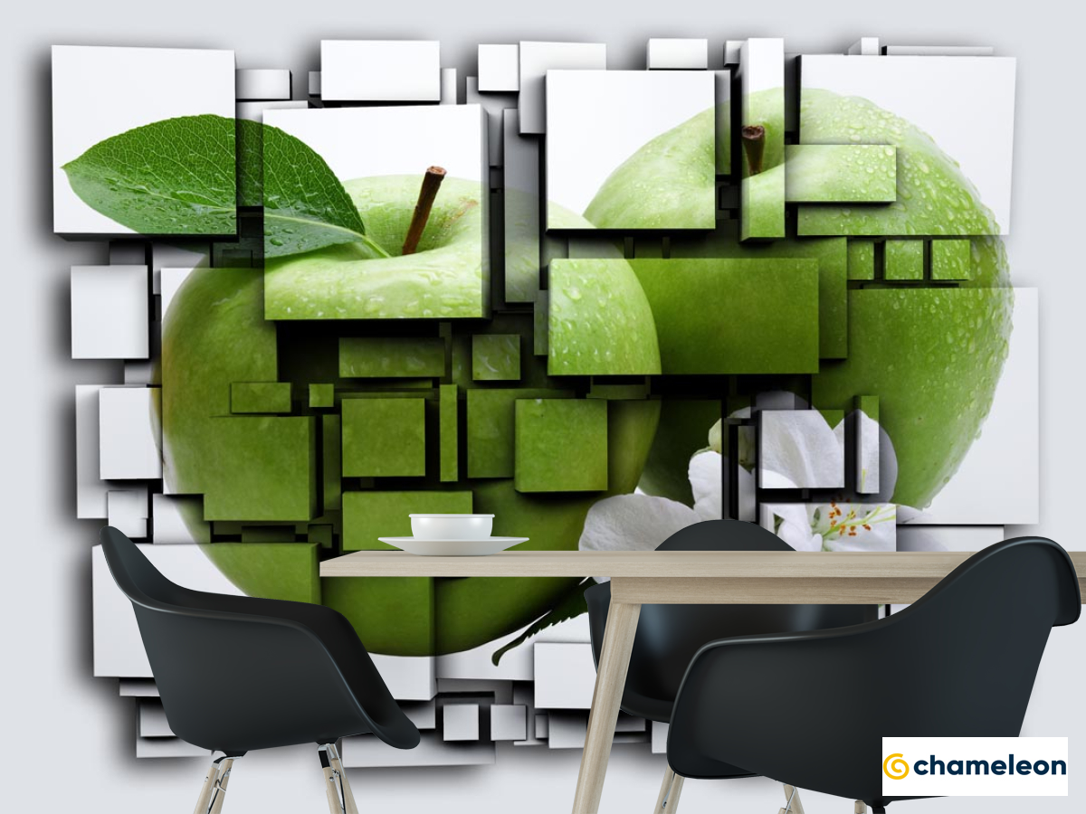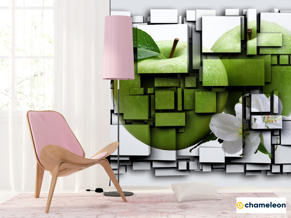 Фотошпалери «Фотошпалери яблуко на кубах 3Д», (арт. 21530) - купити в інтернет-магазині «Будинок Фотошпалер» Хамелеон