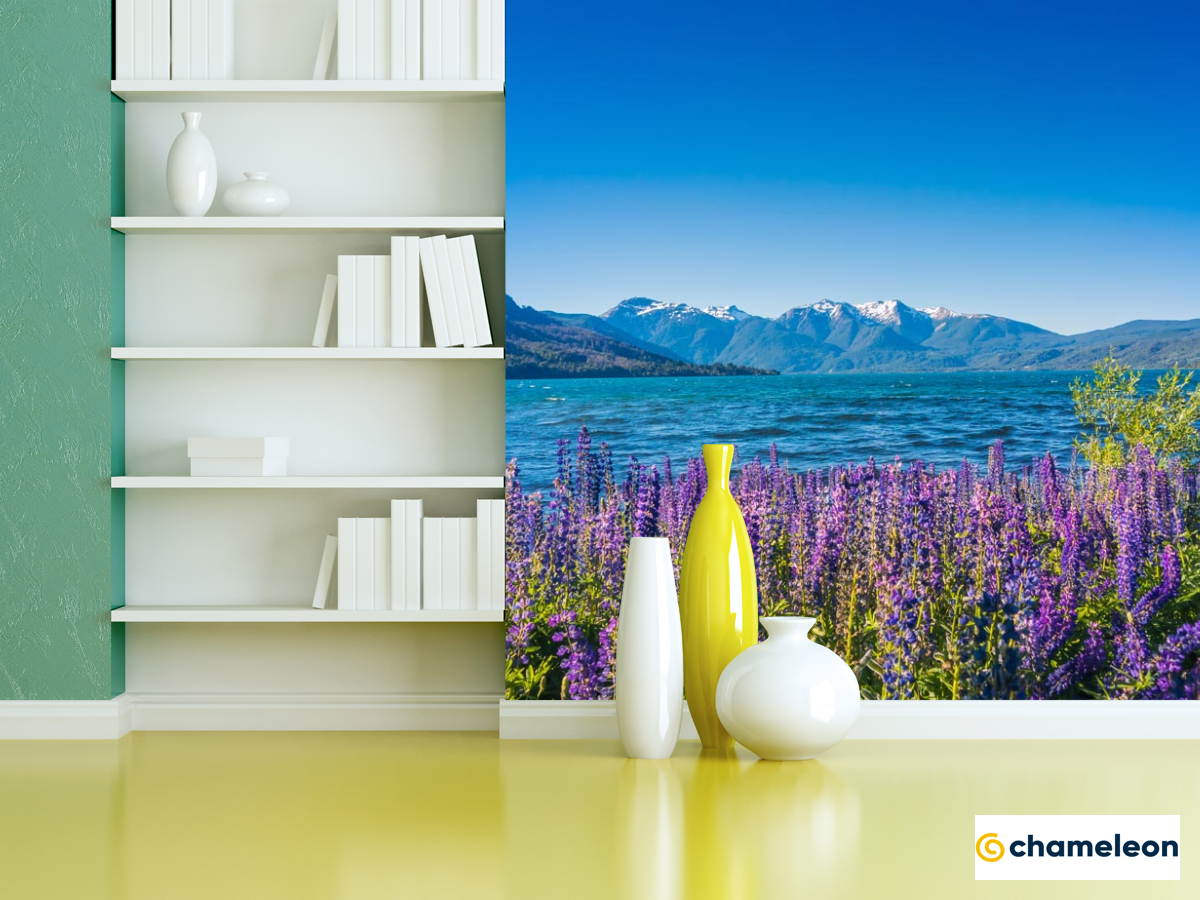 Фотошпалери «Фотошпалери гірська лаванда на березі озера», (арт. 21538) - купити в інтернет-магазині «Будинок Фотошпалер» Хамелеон