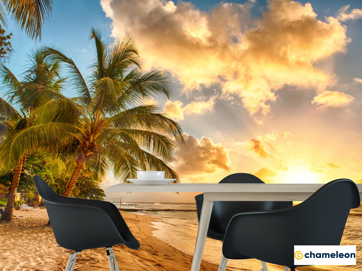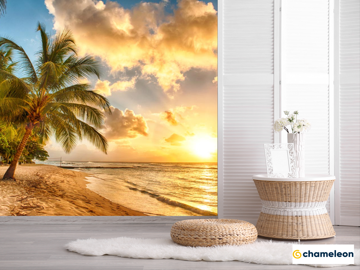 Фотошпалери «Фотошпалери пальми над морем і жовті хмари», (арт. 21591) - купити в інтернет-магазині «Будинок Фотошпалер» Хамелеон