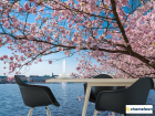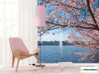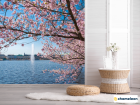 Фотошпалери «Фотошпалери сакура над річкою з фонтаном», (арт. 21623) - купити в інтернет-магазині «Будинок Фотошпалер» Хамелеон