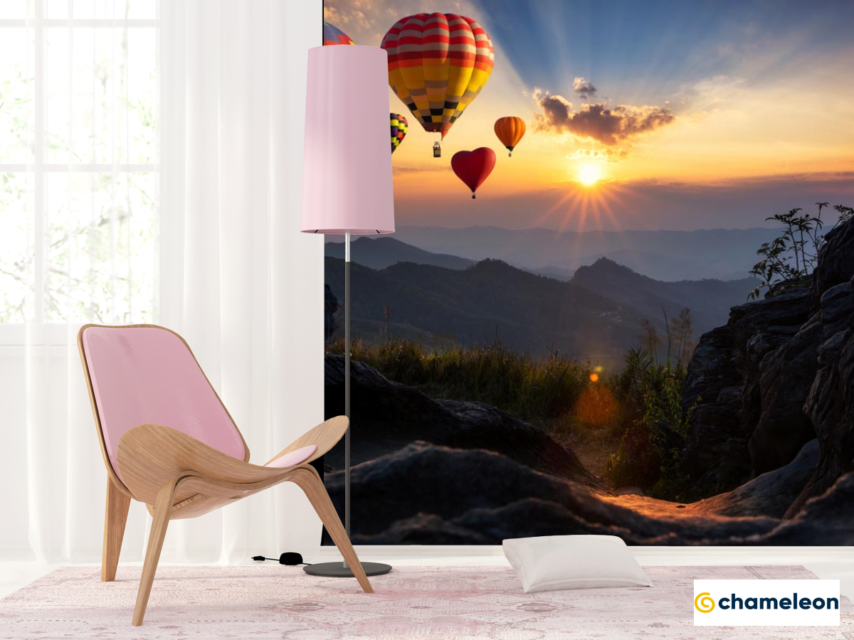 Фотошпалери «Фотошпалери повітряні кулі сердечка», (арт. 21655) - купити в інтернет-магазині «Будинок Фотошпалер» Хамелеон