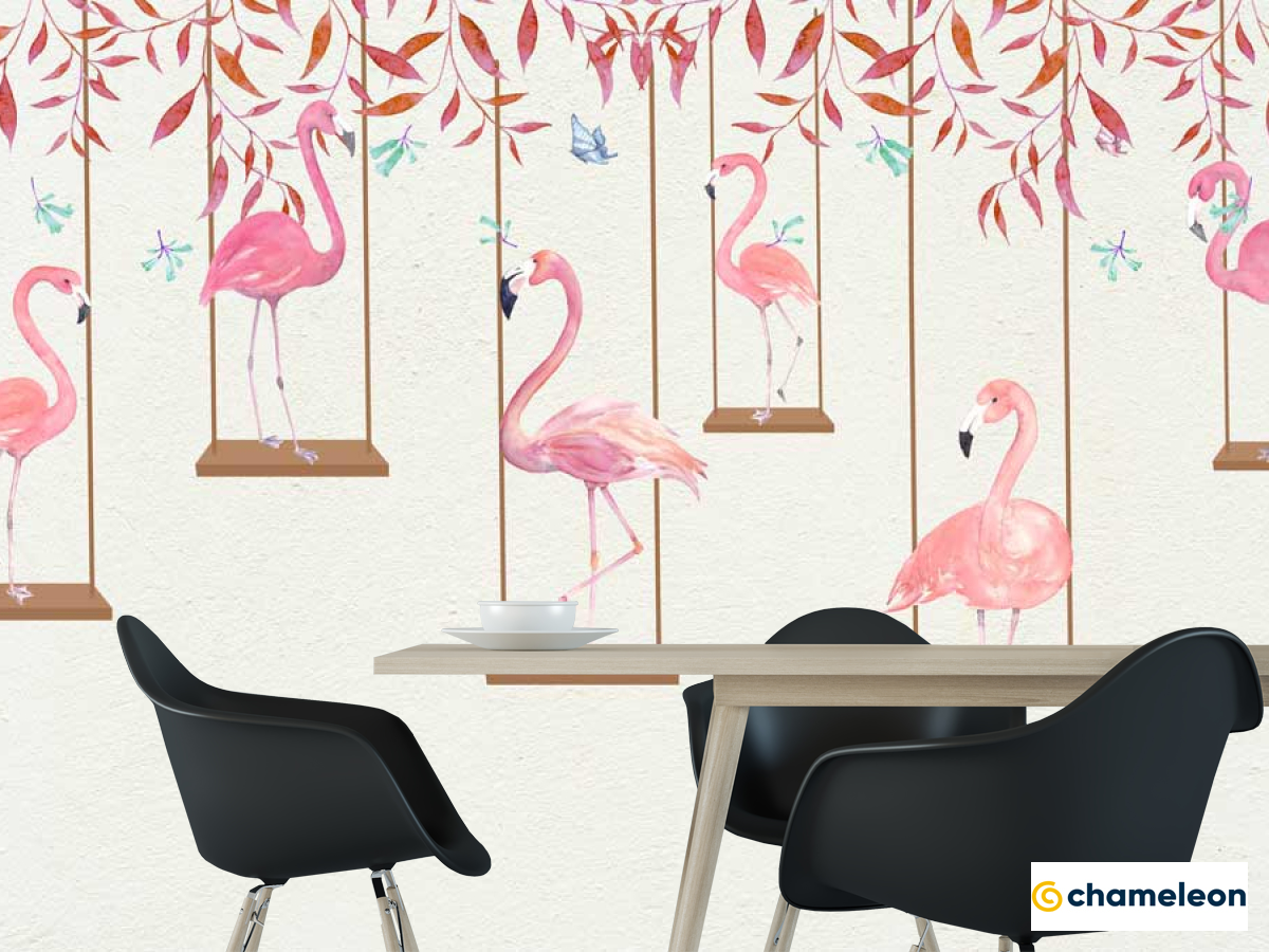 Фотошпалери «Фотошпалери Фламінго на гойдалках», (арт. 22084) - купити в інтернет-магазині «Будинок Фотошпалер» Хамелеон