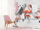 Фотошпалери «Фотошпалери Фламінго і геометрія», (арт. 22085) - купити в інтернет-магазині «Будинок Фотошпалер» Хамелеон
