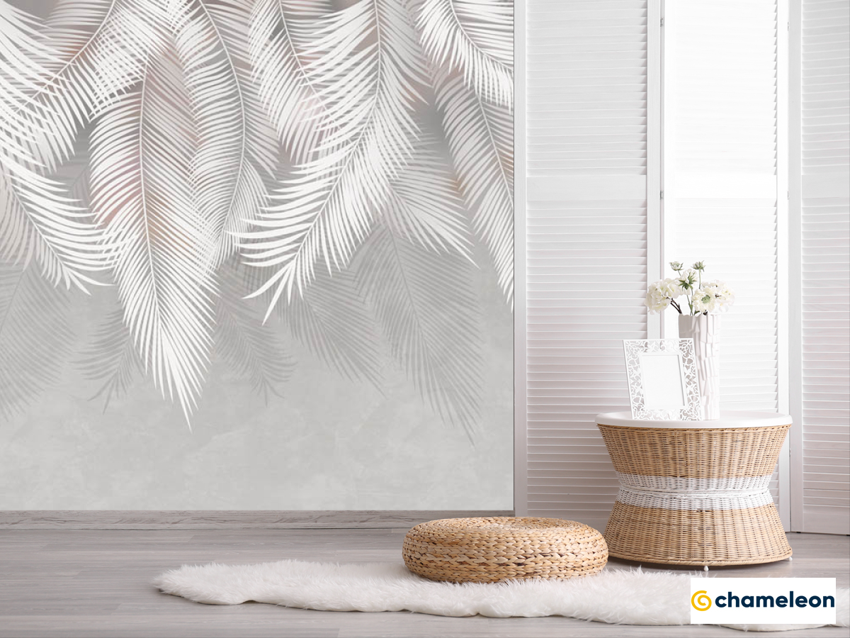 Фотошпалери «Фотошпалери Сірі листя зі стелі», (арт. 22120) - купити в інтернет-магазині «Будинок Фотошпалер» Хамелеон