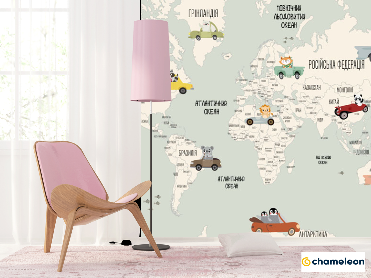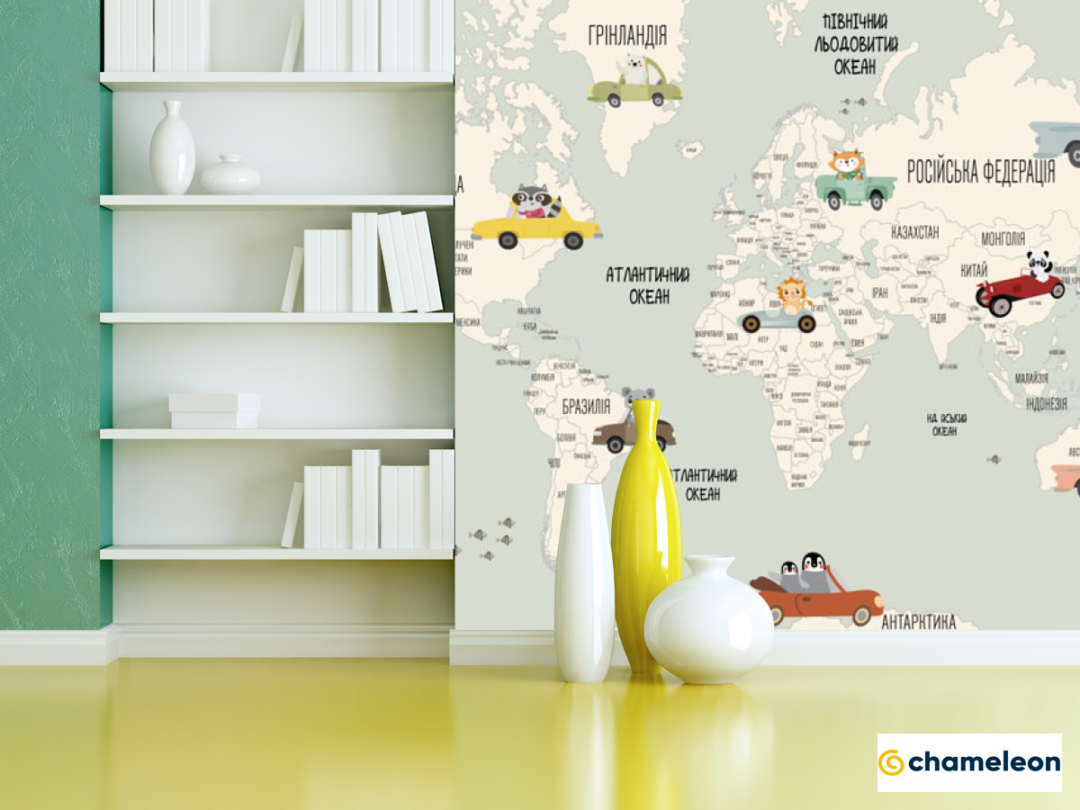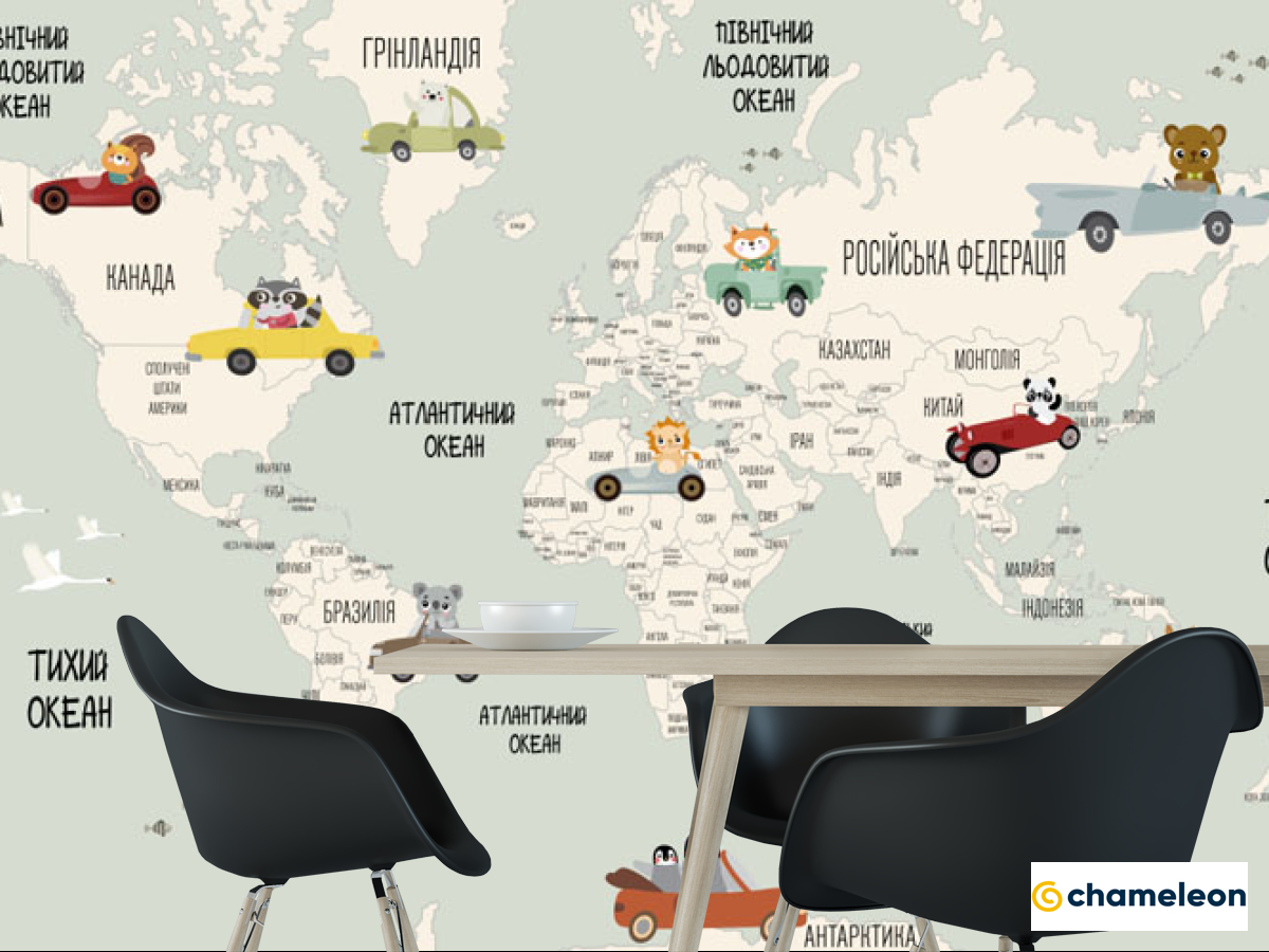 Фотошпалери «Фотошпалери Карта з машинками англійською», (арт. 22143) - купити в інтернет-магазині «Будинок Фотошпалер» Хамелеон