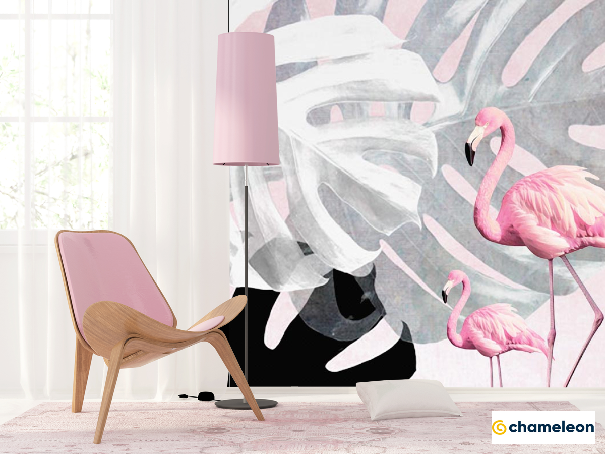 Фотошпалери «Фотошпалери Фламінго і Монстера», (арт. 22256) - купити в інтернет-магазині «Будинок Фотошпалер» Хамелеон