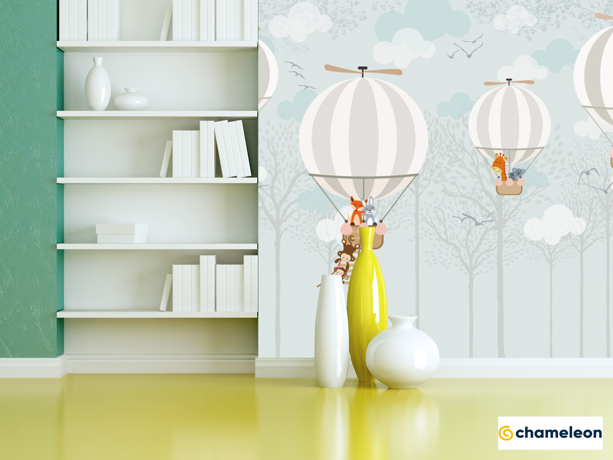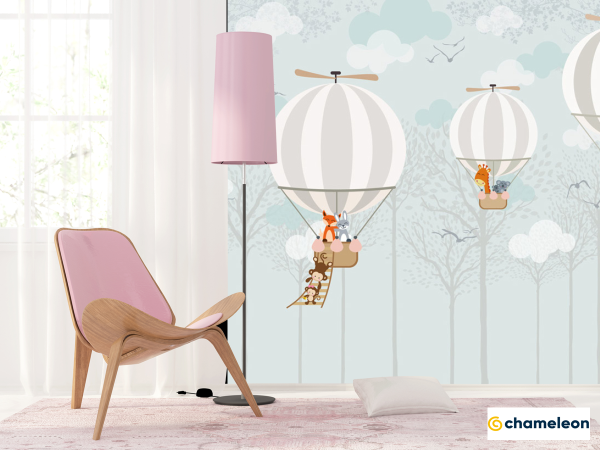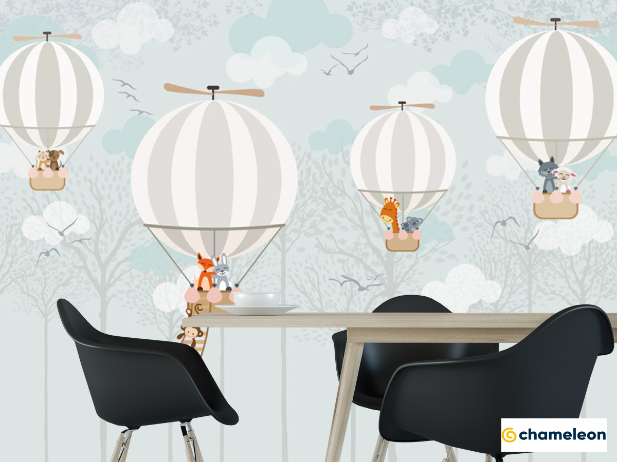 Фотошпалери «Фотошпалери Звірі летять на повітряних кулях», (арт. 22258) - купити в інтернет-магазині «Будинок Фотошпалер» Хамелеон