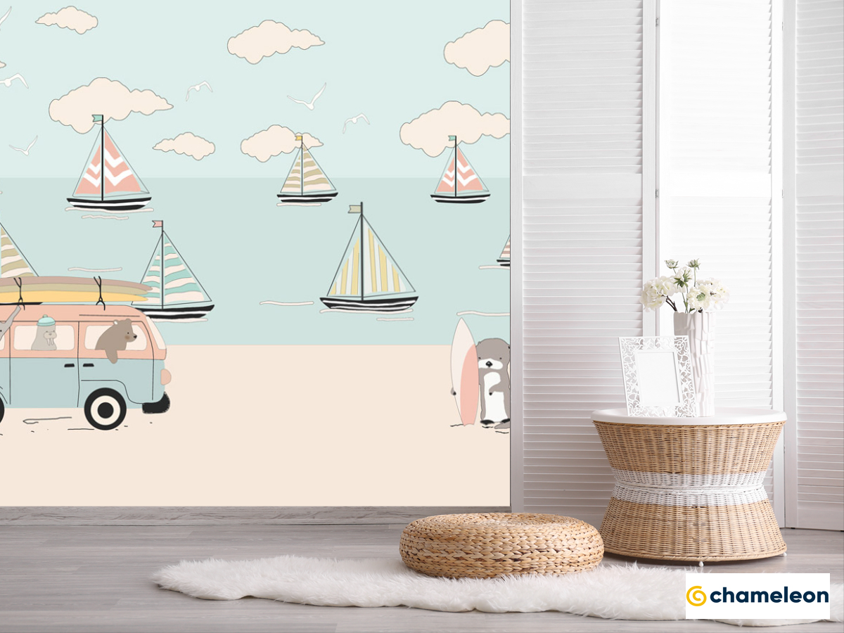 Фотошпалери «Фотошпалери Машинки на пляжі», (арт. 22259) - купити в інтернет-магазині «Будинок Фотошпалер» Хамелеон
