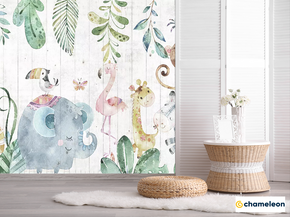 Фотошпалери «Фотошпалери Акварельні тварини», (арт. 22285) - купити в інтернет-магазині «Будинок Фотошпалер» Хамелеон